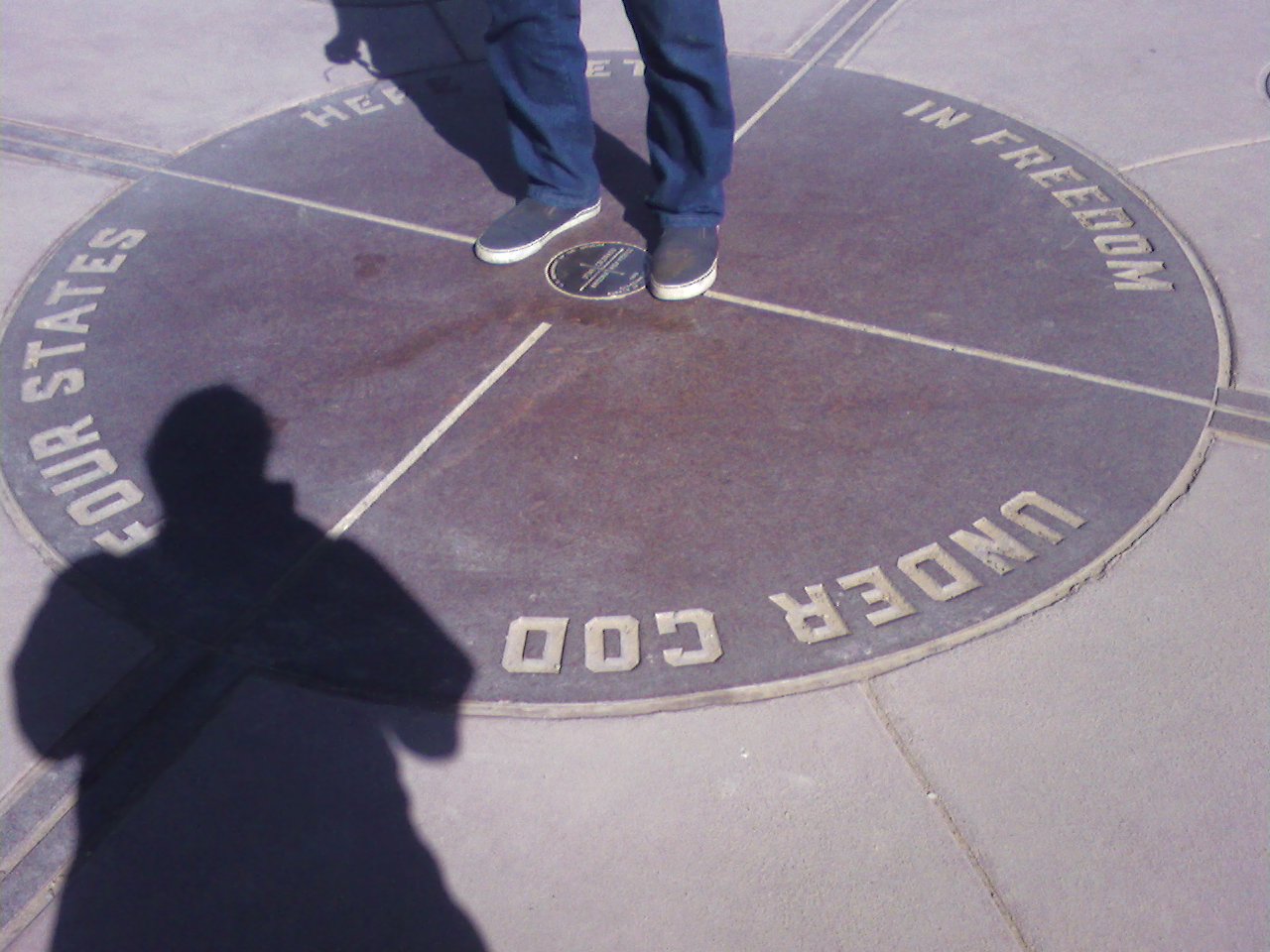 Got out about 8:30 or so, starting the day with coffee and plans to stop for breakfast along the way. We drove east on 64, then picked up Route 160, stopping at a travel center in Tuba City to pick up fuel and have a quick sit-down breakfast at the cafe there. I tried a local variation of pancakes with my eggs, they were made of blue corn flour. Who says there’s no such thing as blue food? They were lovely, had just enough of a difference in flavor to make it quite interesting. We headed off again into the desert, into one of the most remote areas in the country. Towns were few and far between, and the only radio station was a 100K watt station broadcasting Native American public radio, where we heard a combination of English and Indian languages, and a very eclectic selection of music, from country to jazz to Indian drums and melodies, all very fascinating, which made the boredom of the terrain tolerable. Made a quick stop at Four Corners Monument, where Arizona, Colorado, New Mexico and Nevada all come together. We had made arrangements to stop for the night at a Morgan horse breeding facility in Cortez that I had found on the internet, and we arrived there at about 4:00, just as we had planned. We met the folks there, got the horses put away in a good-sized corral, settled in the RV and spent a pleasant evening watching the sun set over the mountains and the stars come out. Cortez is a cute little town in a valley with stunning mountains emerging all around them, so the views were quite remarkable. Didn’t bother with the satellite dish for a one night stop, so we watched some recordings and went to be early, knowing that tomorrow will be a longer drive, though at least it’s one where we know what’s in store for us when we get there.