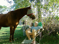 Having already let his friends know he would be leaving early today, Brother and I left with the horses around 12:30, finally taking him out to Dupuis, a place that despite the fact that he lives less than 30 minutes away, he has never been. We saddled up and headed out, me with my saddlebag packed with my usual; first aid kit, thermal blanket, matches, Swiss army knife, extra Gatorade, etc. Brother, of course, packed his saddle bag with his usual; beer. What can I say, it’s just the way he is. Anyway, we headed out on the yellow trail, most of which I hadn’t done yet, and it was a lot more wide open than previous trails had been. After an hour, Brother needed a break, so we stopped for awhile. Then we headed out again, for about another half hour, till he needed to stop again. While we were resting, we saw TWO bald eagles, one perching in a tree so quietly he looked like part of the tree, and another that came swooping in, landing near the one perching for a few minutes, making some sort of overtures of some kind (not sure if it was mating play or something), before taking off and circling away. It was truly a beautiful thing to watch. We then carried on, and finally got one pretty decent canter in (he doesn’t like to trot because he hasn’t really learned to post yet, so we’ve been plodding along at a walk the entire way), which went well. Then we took a third and final break next to a small pond where the horses were able to get a much needed drink before heading out again. By now, even my butt was getting tired from doing the same pace all day. The trail is just under 9 miles, and I had figured about 3 hours, but with all the stops and lack of trotting and cantering, it took us almost 4 � hours to complete. It was after 6:00 by the time we got back to the trailer, nearly 7:00 when we got home. It was a beautiful day, though, a bit hot in the sun but a nice breeze kept us from overheating. It was a great ride which I look forward to doing again with Hubby on another day. Crashed for the evening, watching the very compelling movie “2012” before going to bed.Saturday, April 2, 2011 – Hang Out Day