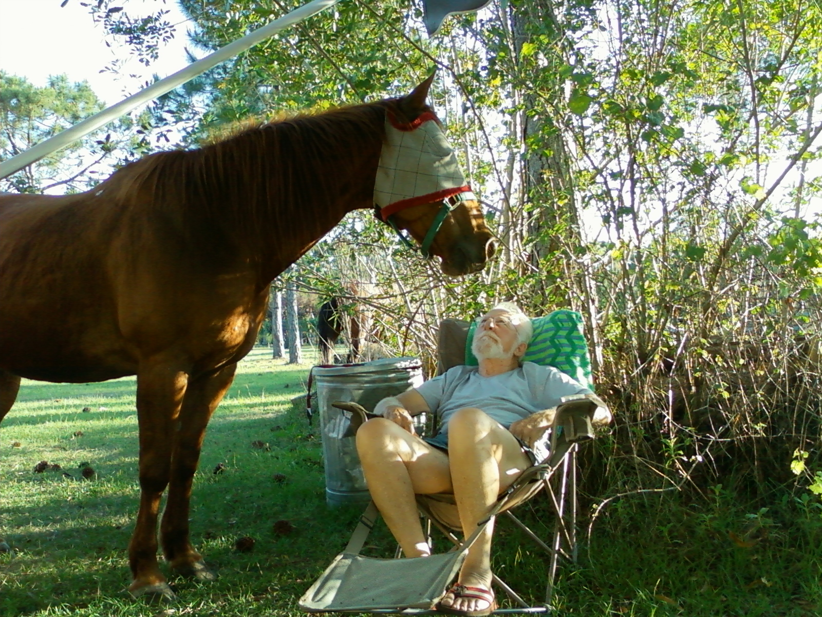 Having already let his friends know he would be leaving early today, Brother and I left with the horses around 12:30, finally taking him out to Dupuis, a place that despite the fact that he lives less than 30 minutes away, he has never been. We saddled up and headed out, me with my saddlebag packed with my usual; first aid kit, thermal blanket, matches, Swiss army knife, extra Gatorade, etc. Brother, of course, packed his saddle bag with his usual; beer. What can I say, it’s just the way he is. Anyway, we headed out on the yellow trail, most of which I hadn’t done yet, and it was a lot more wide open than previous trails had been. After an hour, Brother needed a break, so we stopped for awhile. Then we headed out again, for about another half hour, till he needed to stop again. While we were resting, we saw TWO bald eagles, one perching in a tree so quietly he looked like part of the tree, and another that came swooping in, landing near the one perching for a few minutes, making some sort of overtures of some kind (not sure if it was mating play or something), before taking off and circling away. It was truly a beautiful thing to watch. We then carried on, and finally got one pretty decent canter in (he doesn’t like to trot because he hasn’t really learned to post yet, so we’ve been plodding along at a walk the entire way), which went well. Then we took a third and final break next to a small pond where the horses were able to get a much needed drink before heading out again. By now, even my butt was getting tired from doing the same pace all day. The trail is just under 9 miles, and I had figured about 3 hours, but with all the stops and lack of trotting and cantering, it took us almost 4 � hours to complete. It was after 6:00 by the time we got back to the trailer, nearly 7:00 when we got home. It was a beautiful day, though, a bit hot in the sun but a nice breeze kept us from overheating. It was a great ride which I look forward to doing again with Hubby on another day. Crashed for the evening, watching the very compelling movie “2012” before going to bed.Saturday, April 2, 2011 – Hang Out Day