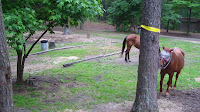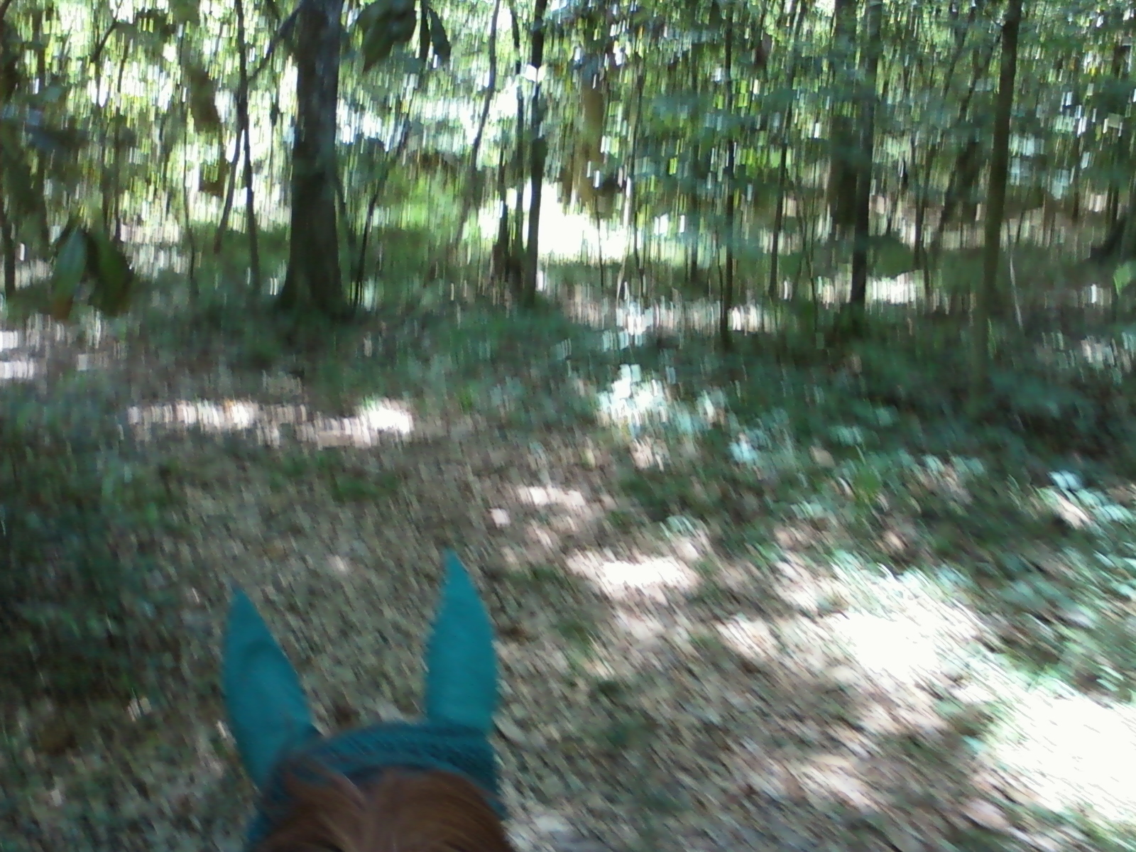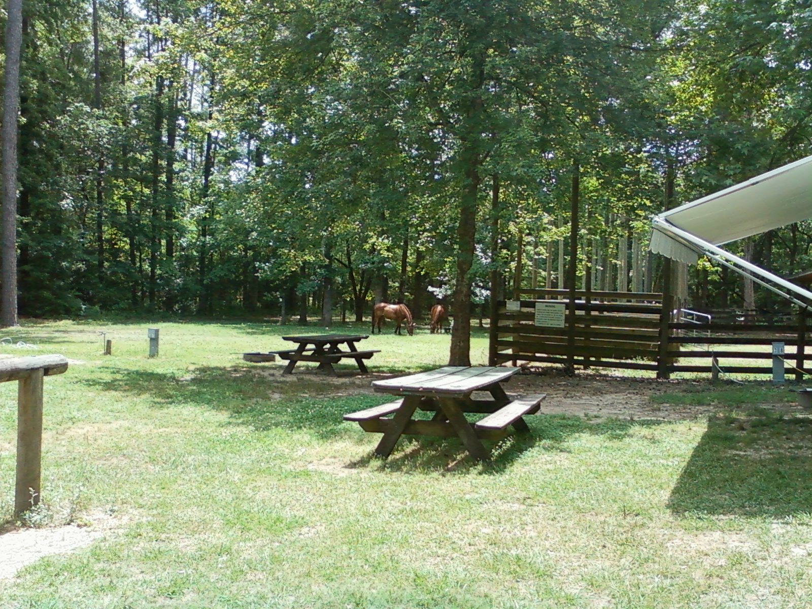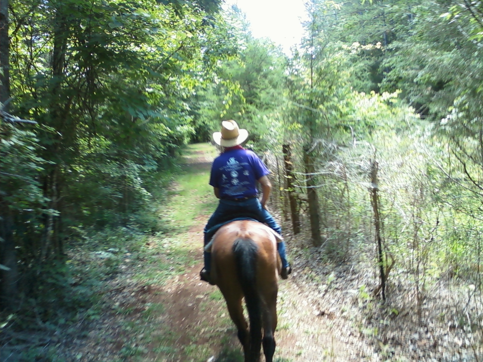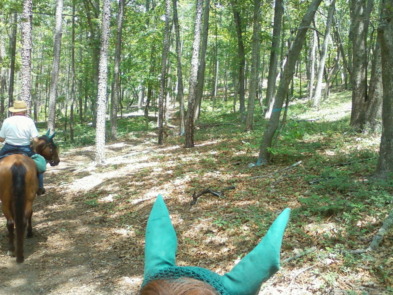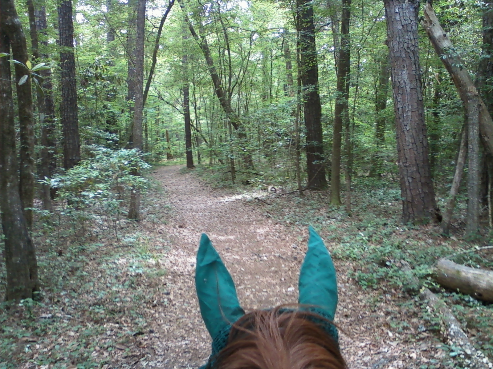 Woke up early even without the alarm this morning, though Hubby was a bit later than me. I had the horses fed and watered, their highline area mucked out, the dogs walked, and even took an extra walk down to the end of the horse camp just to see what it looked like before Hubby even got out of bed. There’s no one here but us, the place is empty, but there are a lot of signs this is a busy place. Sometimes we go to a horse camp and it doesn’t look like there’s been a horse in there for months, even years! But here, there was obviously a lot of activity over the weekend, at least a half dozen sites still had garbage in the trash cans scattered generously around the campground. After breakfast, we met the rec tech Ranger who was testing the water and doing other chores, then we saddled up and headed out on the White Trail, the shortest (just under 4 miles) just to give the horses a chance to stretch their legs. They were in the trailer a long time yesterday, so we didn’t want to wear them out too much today, and, weather permitting, we’re planning on taking them on a 16 mile trail tomorrow. Anyway, I had reconnoitered the area earlier when I had gone out to find a cell phone signal (the only drawback here), and we headed straight out the White Trail from the campground. The trails were VERY well marked, I never had to look at my trail map once, which always makes for a much more enjoyable experience (getting lost is always stressful), and the trail was marvelous! Lots of variety, deciduous mixed with an occasional pine forest area, good footing of mostly hard dirt, very few wet spots, even some great straightaways for fantastic canters! Couldn’t have asked for more! There were some stones on the trail occasionally, so we’ll likely put boots on the horses tomorrow just to be safe, but really, very few stony areas to bother a barefoot horse. What a great ride! And even though it was mid afternoon, the temps were quite nice in the forest, with plenty of shade to keep the heat from getting too bad. It only took us a little over an hour, but it was fantastic! When we got back, we spent a little time doing some hoof trimming (the warm weather really makes their fee grow fast), then we settled in for the rest of the day, though I took one more trip out to check my email, this time finding a signal much closer, thanks to the ranger’s suggestion about where to go. A lovely relaxing evening.Monday, May 7, 2012 – Travel Day to Warden Station, Talladega National Forest