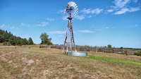 Woke up good and early, knowing we had several stops today and wanting to still get to Halsey reasonably early, so we were on the road by 8:00. Stopped at Ft. Robinson to dump, then on to Chadron where we went to the Country Kitchen for breakfast while I did some quick work on my computer, and Hubby Skyped his sister in England to wish her birthday greetings, all of which took more than an hour. We then ran down to a farm supply store and Walmart before heading out of town. We stopped again in the town of Alliance to pick up fuel and propane, then finally arrived at the Bessey Ranger Station much later than we anticipated, right at 5:00. Fortunately, I had called ahead to confirm where spigot water was available, and when we arrived we headed straight there (next to the Rec building before entering the main campground). We filled the RV and both portable water barrels, as we have another 8 miles to Natick and we didn’t know what kind of water situation was there, other than a hand pump. Those 8 miles turned out to be painstakingly slow in an effort to not spill any more water than possible, and the roads, though mostly paved, would have been better off being gravel, they were so rough. Fifty minutes later, we arrived at the camp. On the left were a row of wooden, seemingly dilapidated corrals and a windmill with a large stock tank of water. On the right was a camping area. At first, we thought that was the entire campground, which didn’t make sense, but as I walked up the road I found the main entrance to the campground loop, which had a much nicer selection of sites. We drove in, and Hubby reconnoitered the area, deciding that site 15 was the best one for our purposes. It was a large site, and about 20 yards behind it was another row of pipe corrals, mostly shaded, but with a line of site that was clear for a satellite signal. We got moved in as quickly as we could (though we didn’t bother with the satellite dish, as we were now in Central Time and it was getting dark by the time we finished setting up) and finally got settled in. We had a late dinner, watched a movie and headed to bed, exhausted.