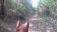 After a great night sleep, (no nearby traffic and no trains! Though the airport is just across the lake, so we did hear a few early morning takeoffs), we had a leisurely morning, getting some work done, before deciding it was warm enough (around 46) to saddle up for a short ride, just to do some exploring. What a pleasant surprise! Once we crossed the field to the concrete bridge across what I assume is Reynolds Creek, we were enveloped into a forest of mostly cedar trees about 25-40 feet tall, and the trail started to weave through them, in many places almost like a tunnel. The footing was perfect, a medium packed dirt with only a few sections of rounded rock that seemed to be put in deliberately, and one or two areas that looked like it could get muddy with rain, though there’s been such a drought here in recent years, chances are it would soak right in anyway. We turned west and followed the creek, and though we didn’t see any blazes on the trail (which worried me at first), at every intersection it is very well-marked with both clearly painted wooden signs, and a You Are Here placard. We had no trouble staying on track with the trail map, though in reality, compared to the actual GPS trail, the map is significantly off. As long as you follow the trail map, though, you have no problems. Plus, it’s a pretty small area, and all trails on the west side eventually lead back to the bridge, so it’s pretty hard to get lost. We only went out for about an hour, less than 3 miles, just to stretch the horses’ legs and get us back in the saddle after 8 days. Apollo had energy, but not even close to the oat-driven madness he had earlier. This new feeding regime seems to be working, he’s calmer and Clio’s starting to put on some weight, really starting to look good again! We put their winter blankets on again, as it’s supposed to get below freezing overnight again. Had plenty of time to have a relaxing evening, having only taken an uncharacteristically short ride today! Looking forward to the next one, though, I sure wish the weather would warm up some, at least to their seasonal norms!