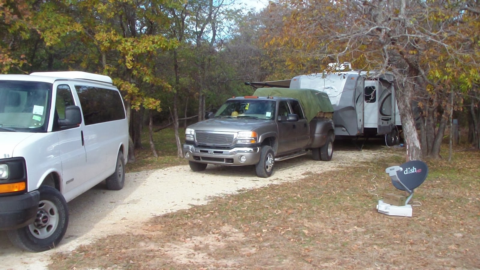 Discovered that at some point yesterday evening, a neighbor moved in. I felt kind of bad because we had put up some tarps around the corrals opposite our horses to provide a windbreak during those cooler nights, and I guess it looked like we had taken over the entire 8-corral structure, because the couple had put their horses across the parking lot in another corral. I apologized and removed the tarps (weather was warm enough not to need them now anyway), and later in the day they moved their horses back over. Our did pretty well with neighbors, though every time food came out, Apollo was compelled to kick at the horse across from him, as a warning. A remnant from back when he was in a herd in a pasture and had to fight for every scrap. They left to go riding, while we unhooked the truck from the RV. I had found and arranged to buy some coastal hay about an hour’s drive away, which happened to coincide with the halfway point between us and an old friend who now lived in Tyler (the Rose Capital, we learned), so we headed first to Howard’s barn, where we picked up 18 nice heavy, wired bales of coastal at the local price of $8 a bale, then headed down to Lake Jackson Seafood, a sparsely decorated place on Main Street, but it had an extensive menu and excellent prices, with large servings, actually more than we needed so we had leftovers to bring home. Had a pleasant get-together with our friend Phil, then headed back to Ennis, a quick stop for diesel and a few staples at Walmart before getting back to camp a half hour before dark. Got the horses settled in, but Apollo seems way too full of energy. I spent a couple of minutes lungeing him, just to calm him down. Obviously the other horses in close proximity, too many oats and not enough exercise are catching up to him. We definitely need to ride tomorrow, though I’m thinking of using his regular bridle with a bit rather than his hackamore, just because I think I may need the extra control! Had a pleasant evening after a busy runaround day.