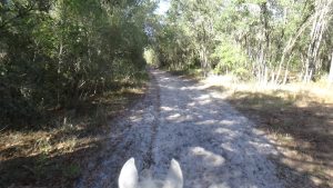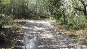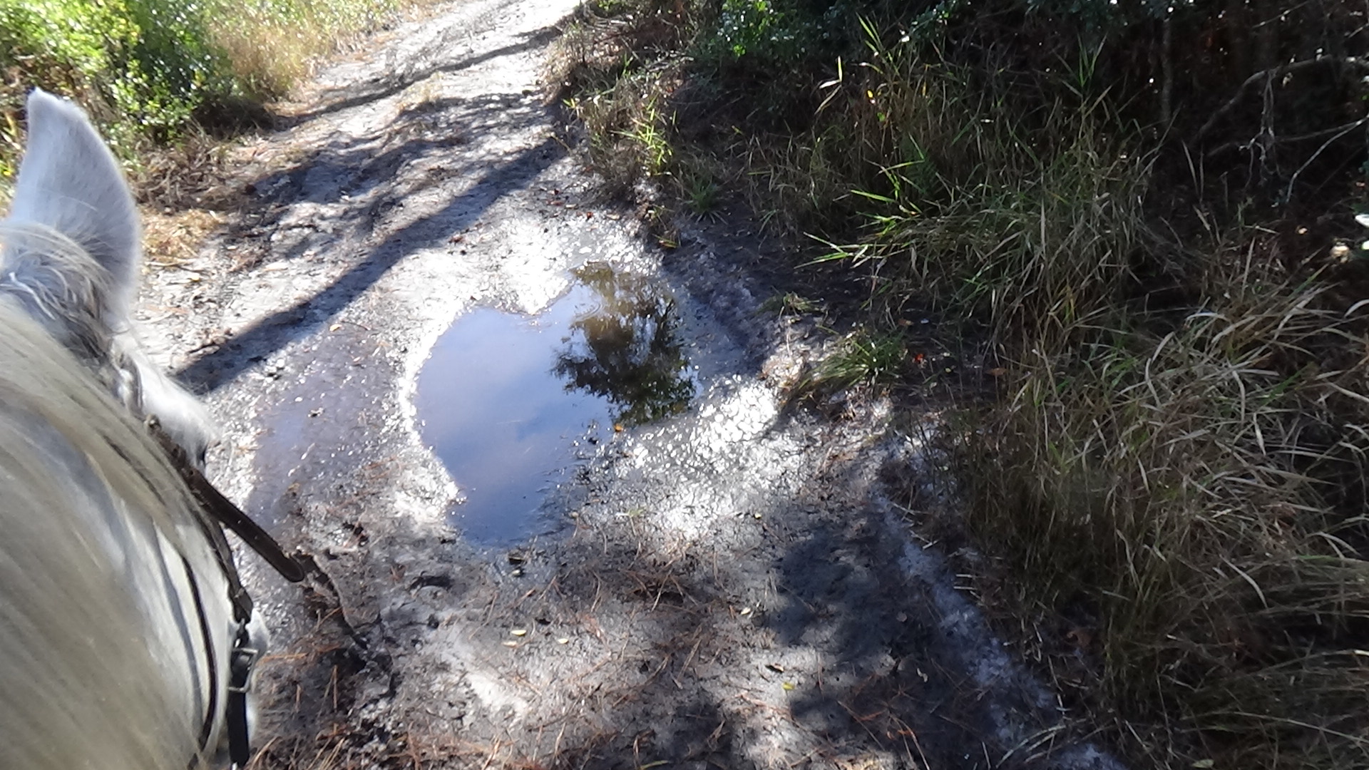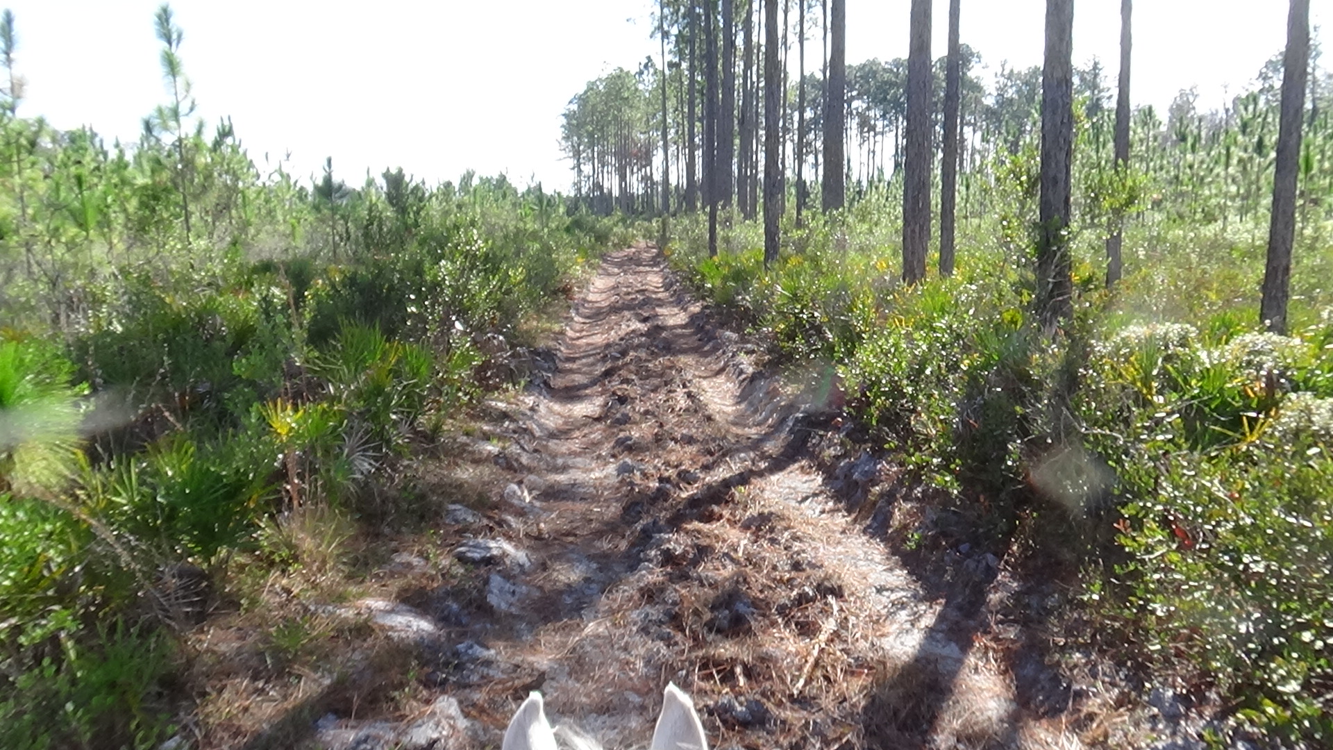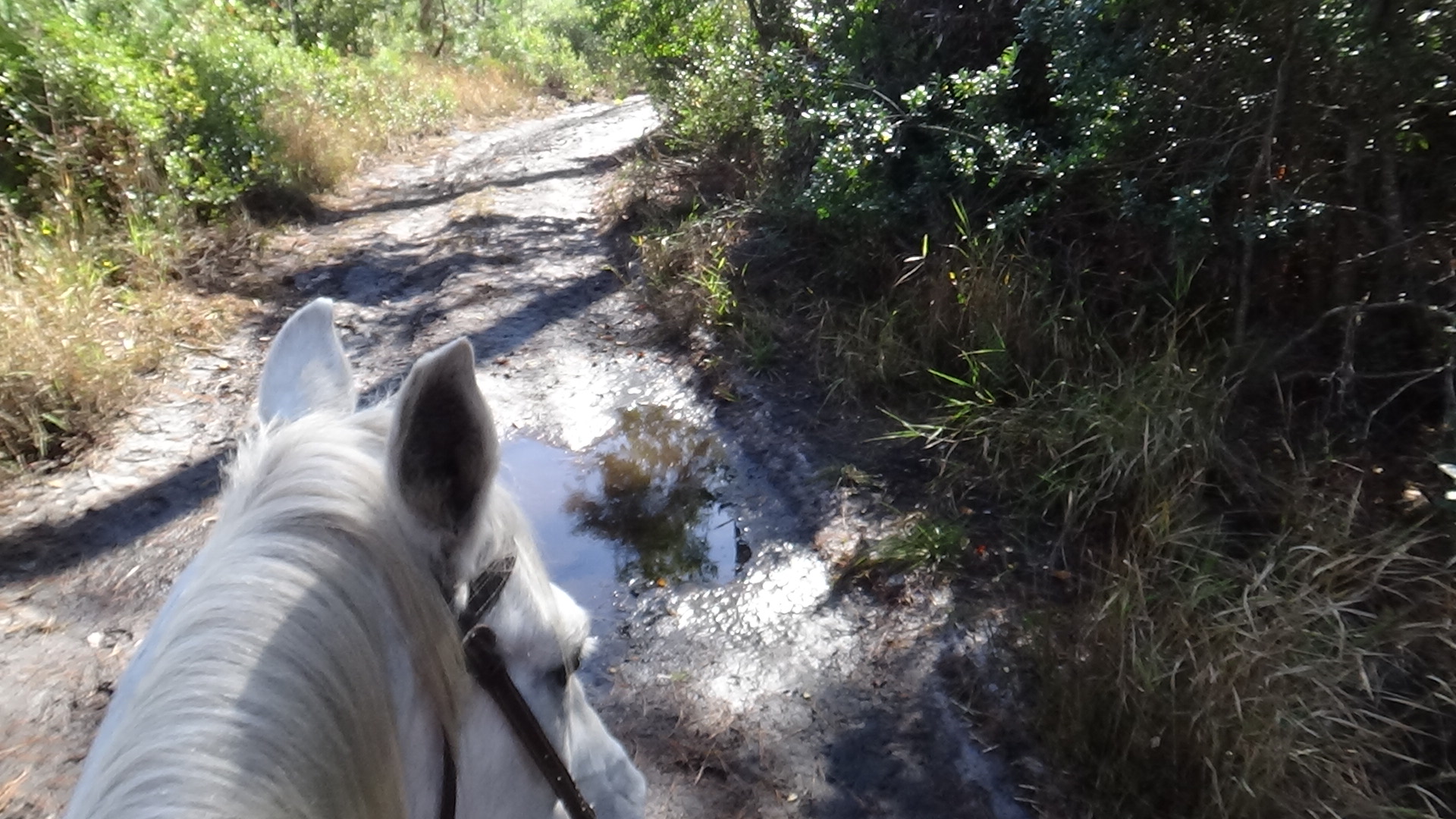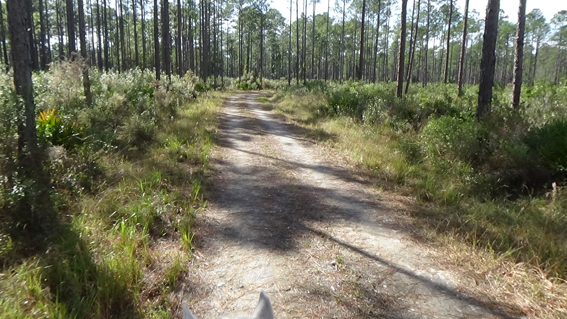 What a great day! It started out with a much better night sleep, confirming my supposition that it was the overdose of aspertame that was preventing me from sleeping well. I had none of the previous afflictions after resuming a mostly water beverage diet today. After breakfast I had to fill up the water in my truck tank and refill the camper, then I finally saddled up Flash and headed out on the trail. We took the long perimeter trail, crossing 441 and riding all the way up to O'Leno State Park. I'd forgotten how beautiful it was on this side of the forest! Flash was brilliant once again, averaging nearly six mph for the day. We did over 14 miles in just under three hours, and got a tremendous amount of galloping, cantering and gaiting in. It was wonderful! About halfway around we went by a cattle or dairy farm, and we were sorry to see a dead cow in a copse of trees, and another cow, still alive, but laying down and not looking very well. So sad! Not far out from camp, there was a long rattlesnake crossing the trail in front of us, and when I stopped to take a picture, it started to rattle and curl up, so we moved along quickly to get past it. What a truly gorgeous ride! The weather is due to turn colder, so I wanted to get a good ride in before that happened, and I couldn't have asked for a better day, or a better horse. Flash truly is a wonder! Gave him a good rinse off with a brush before putting him away, and was happy that he didn't immediately roll in the dust, as he is wont to do. Settled down for the rest of the day to reading and bingeing on TV, and am looking forward to a quiet day for Thanksgiving tomorrow. Good night, my darlin'! Love you!