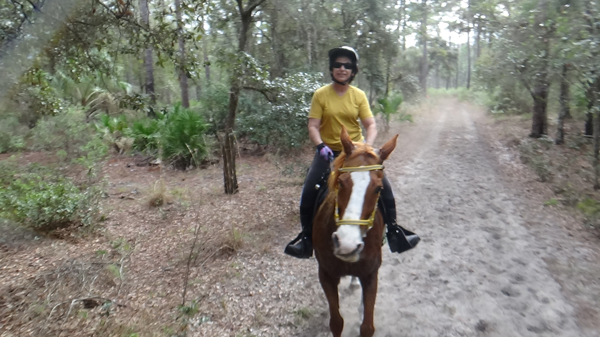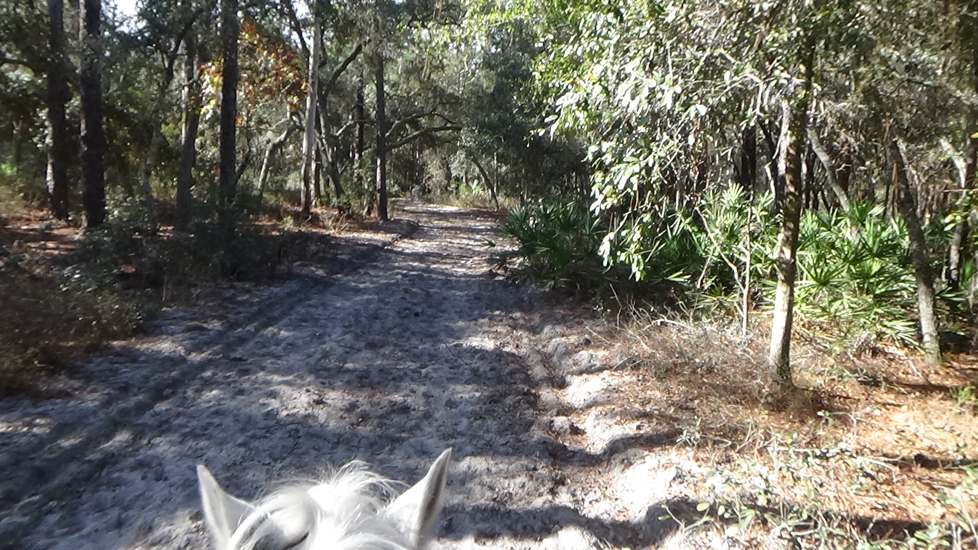 Had a better night sleep, woke up ready for the busy day, and busy it was! Was ready at registration by just after the appointed time of 7:30, then after taking care of business there, headed back to lead Flash over for a vet check, and we rode the intro ride today, as a favor to Jo, who's getting her horse Luna back on the trail after ten months of recuperating from a suspensory issue. Passed vet check with flying colors and headed out on the R&W trail about 9:30. We were hoping this would be a speedier ride that the last time we rode together, training Nikki, and it occasionally was, but not enough to keep Flash happy! I did experience something today I had never done before, which was somersaulting over the head of my horse. Unintentionally, of course. We had just decided to open up a little bit, got about ten strides before Jo hollered to slow down, her horse was starting to buck on her, which we discovered was because one of her back boots was coming off, so she got dumped. At the same time, Flash was just coming into some deeper sand, so when I reined him in he lost his balance and fell to his knees, which is the point when I somersaulted over his head. Good thing is that the drop from a short horse on his knees isn't very far to the ground, so I didn't get the least bit hurt, and neither did he. Thank goodness we were on soft sand! Jo was fine as well, though a bit later, she was thrown again, and may have wrenched her neck a bit, though nothing too serious. Hey, we horse gals are tough! The rest of the ride was fairly uneventful, although Jo wanted to walk quite a bit of it, but we finally were able to pick up the pace to a steady, medium gait. Unfortunately, we never got to canter or gallop, so Flash was a bit frustrated by that. We were back well before noon, and Flash passed his vet check again, though he got a B on impulsion, that's his one weak spot, entirely my fault for not training him how to do it. What can I say, I have a fundamental issue with being beside more horse rather than on him! Just something wrong with that picture to me! Anyway, the rest of the day was filled with tending to all the business of the ride, and it was all finally over around 8:45. Another long day! We had several hours of hours that hadn't been in the forecast until the last minute, so all my tack got wet, and the temps dropped, so I had to put blankets on wet horses after feeding them. Looking forward to a long hot shower and a good night sleep! Love you, darlin'! Good night!