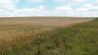 Having established our schedule for the next few weeks, and deciding to stay until Tuesday rather than our regular Monday departure, we took another ride around the grasslands. This time we headed north and east, following the perimeter much farther east than we had previously. We passed several ponds that had been dammed in, paralleling some huge fields of wheat and grass, galloping and cantering whenever we got the urge, passing through gates from one field to the next, enjoying ourselves immensely. Honestly, though, as lovely as it is, I wouldn’t want it to be my only riding spot, it would get really boring in a hurry. Views were great, but all pretty much the same after a while. Nice ride though, no questions about that. Looking forward to our next stop in the Badlands, though, as that terrain will likely have considerably more variety. Today’s ride was even longer than our last ride here, as we took a much wider sweep of the property, though it’s a bit deceiving, as each dip and rise looks like the last, and even though we could see the campground, we ended up not coming in the way we expected. That’s a good thing, though, it keeps us on our toes! We passed one area that must have been an old homestead, because right in the middle of this prairie was one, single pine tree. Probably (like Hubby and me) someone planted a Christmas Tree after the holiday was over, and it’s just there to continue commemorating the event. Christmas in August, suits me! Put the horse back on their anchors and settled in for the evening.