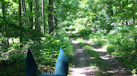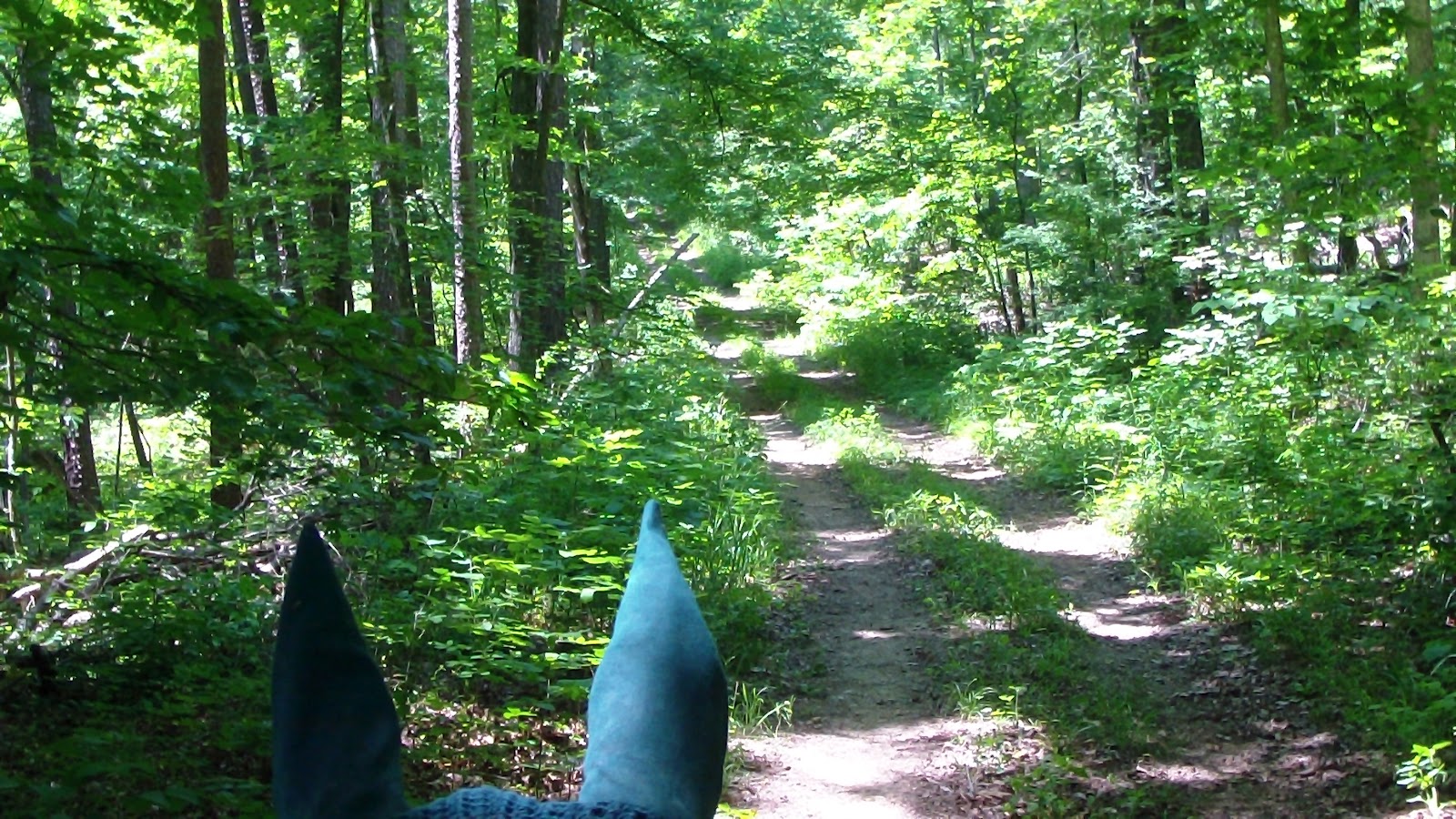One more trail to do here, the Orange Trail, and as it turned out, it became our favorite! Much more “trail” than road, though not really much better marked than the rest, again, mostly at the intersections. One waypoint of interest was the Hamby Cemetery, a small family plot dating back to births before the Revolutionary War, 1774 pre-USA! We stopped there for a snack, a rest and a horse apple break before pressing on. This was a great trail. Again, though, when we hit a forest road, it was again poorly marked. The map indicated we should go directly across the road, but there was nothing there, a right turn up the road didn’t seem to take us anywhere, so we turned left, knowing that was at least in the right direction toward the center of the park, and thus would cross other trails. Fifty yards or so up we saw an opening for a trail on the right, though it wasn’t marked orange, we took it anyway, just to get off the road. A short ways in we realized Clio had lost one of her Easyboots (Hubby had made a repair to it a few days ago, but it was obviously too far gone), so we turned back a bit to try to find it, but then decided it was too far to go just to retrieve a boot that was probably beyond repair anyway (so if you see that boot on the east side of the Orange Loop, help yourself!) Got a little turned around at one spot, again, but managed to find ourselves back on the right track, and got back to camp safe and sound, delighted that we have found a trail as good as that one here, especially after our slow start on the Blue Trail. Once we got back to camp, we started packing up for our departure tomorrow.