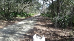 Had a great night sleep, once again getting my chores and breakfast done in a leisurely manner before saddling up Flash and heading out, this time to do the 20 mile Green trail that was used yesterday as the first loop of the 35. Got off to a bit of a rocky start when I thought the trail started up the driveway, but it turned out they were coming in that way, not going out that way, so when I finally figured out I was leaving from the same gate as yesterday, I had already clocked a mile going back and forth up the driveway! No worries, we finally got started on the right trail and this time, we headed more northeast, into sections of the Greenway I've never done. What beautiful trails! Some of the live oaks were absolutely huge, and stunning! Absolutely breathtaking. I only had one bit of confusion that was quickly cleared up by trailmeister Madelyn, but the rest was fine. This is truly my favorite endurance ride volunteer activity, taking down trail markers. I get to ride the trails without any stress of designing them or putting up markers. Even though I enjoy doing that, it can be taxing, but taking them down is utterly brainless and delightful! I even saw a pair of coyotes out and about, which surprised me in the middle of the day, but apparently they are so abundant here now, daytime sightings are becoming quite common. Flash wasn't quite as rambunctious today, but we still maintained a steady pace and got back into camp before 3:00, despite not getting off the property until 10:00. Lola got to spend the day with Art again, same as yesterday, so she's a happy camper, being able to get walks in throughout the day. After putting Flash away, I went over to our Cracker hostesses and chatted with them awhile, letting them know that there was a possibility I may need help getting out tomorrow. They went about making sure they had a key to the big tractor that sitting in the pavilion, just in case. It was a lovely chat. By then, dinner had arrived, so I went back to pavilion, and stayed through dinner and the ride meeting. Settled down for the evening, and once again, am up to teatime! Heading to bed shortly, of course. Tomorrow we will be doing the 15 mile white trail, so hopefully Flash will be good with that. Must be reminding him of the Shore to Shore Ride, when we were doing 20-25 miles a day, so tomorrow should be a breeze! Anyway, good night, sweetheart! Love you!