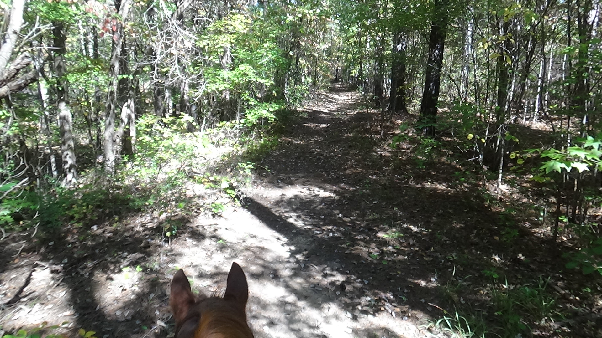 Had a great night sleep, a slow morning, and then a short, three mile ride on Flash, just to see how his leg did. What a ride! He was fine and normal for the first couple of miles as we started down by the river just to see how it looked after last year's flood (it was fine!), then headed up the yellow trail. I just wanted to do a short ride, so we did yellow, then purple. At the last mile, though, as we were heading back to camp, he suddenly became very excited and started wanting to canter, even though it was woodsy, twisty, windy and hilly! Don't know what got into him, except that he wanted to get back to camp as quick as possible! I had to stop and circle him a few times just to get him to settle down. Guess his leg wasn't bothering him, was it? We got back, I rinsed him off and put him away, keeping an eye on his right rear hind the whole time and didn't see any indication of anything being off. Yay! Next ride, we'll go a lot farther and see how it holds up. Very glad it doesn't seem to be anything too serious, though it's probably too early to tell. Spent the rest of the day in my usual routine, though I took Lola for a couple of walks around the camp loop just for exercise, to keep from doing nothing but sit all day, and to give her a little remedial training. She's hasn't been coming when I call very well, so we did a little work on that today. Settled down for my usual evening, heading to be soon! Good night, babe! Love you!