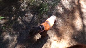 Well I did manage to get to bed reasonably early last night, and still slept until just after 8:00, so I guess my body clock is doing it's own thing! Nevertheless, I had to get up right away because my friend Patsy was coming down to ride with me, so I got my chores and breakfast done, and had just pulled Flash out of his paddock when she arrived, so the timing was perfect. We got saddled up, chatted with some neighbors who wanted to say hello to the horses, as well as a volunteer group that was putting in new corrals across from my site, tearing down the old wooden corrals and putting in pipe corrals with an 8' gate, which should be more convenient. I like the wooden ones, but they are rotting, as my repair job the other day proves. We finally got on the trail around 11:30, deciding to do about ten miles (turned out to be about eleven), so we took the orange trail, then a bit on the brown trail, until we picked up the yellow trail back to camp. We did very well for the first mile and a half while the horses were getting warmed up, the Patsy's horse Hero started a nice breezy trot, which Flash took as a challenge, and next thing I know, he's go, go, going again! I ended up having to get in the front or get my arms pulled out, but Patsy didn't seem to mind, she said she needed someone to push her, she's just been moseying all summer. We did a steady gait (with Flash doing a lot of bunched up canters, like a dressage horse!), and when we finally hit the yellow trail going south, I just had to let him run. So much energy! He's definitely ready to go! I'm almost tempted to enter him into the ride at Sandhills, just to give him a good workout. I'm convinced he could lead the pack! There's a lot of nice sandy trails out there, I'll just let him run when we check the trails. Once again, I kept an eye on him when we got back to camp, and he showed no signs of lameness or weakness of any kind. Despite it being a cool cloudy day, only in the mid-sixties, he had worked up quite a sweat, so I rinsed him off, of course, and Patsy did the same with Hero. After putting them away, we sat and chatted for a few minutes before she headed out and I settled down for the evening. This horse, Flash, is so much fun to ride!! What a great day! Love the trails here, loved the company, and love this horse!! Life is SO GOOD!! Good night, sweetheart! Love you!