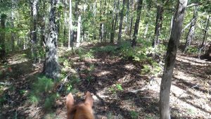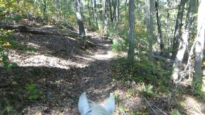 Had a little trouble getting to sleep last night, so I ended up sleeping late in the morning. After chores and breakfast, I saddled up Apollo, wanting to keep him moving and to give Lola some exercise. He was even slower than usual, making me wish I had given him some bute this morning, but I hate to do that before a ride, in case he tries to do too much. I did give him one when I got back though. Lola stayed way in front of us again, just too slow for her, even with her limp! We only went about 2.7 miles, and I even walked some of it, just to get him moving a bit faster. Yes, my walking was faster than his! He used to be such a fast walker, it's sad to see him slow down so much. Anyway, once we got back to camp and I put him away, I did some mending on the old sheepskin (I noticed one of the straps had torn off), and also the saddlebags, which are a constant repair job. I also tried to fix the leg on the solar panel. I've done it before and it's broken again, and I finally got tired of messing with it, so I've done it again, hopefully a better job this time. Did some research on the keto diet, as I've kind of hit a plateau on the lowfat, high carb diet I've been on, so I thought I would go in the opposite direction for a few days, see if it helps my downward trend get moving again. What can I say, I feel the need for meat! Relaxed in the evening, days are getting shorter in a hurry, nights will be getting cooler, too. Winter is on the way! But it's perfect weather at the moment, 70's during the day, 50's at night, my perfect balance! Love it here, but rules say I must move on Monday, so tomorrow is packing, and also is forecast to be rainy, so a good day to stay inside. No laundry likely tomorrow! Good night, babe! Love you!