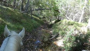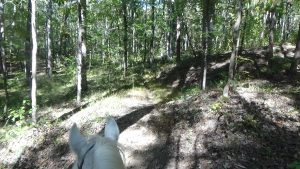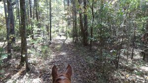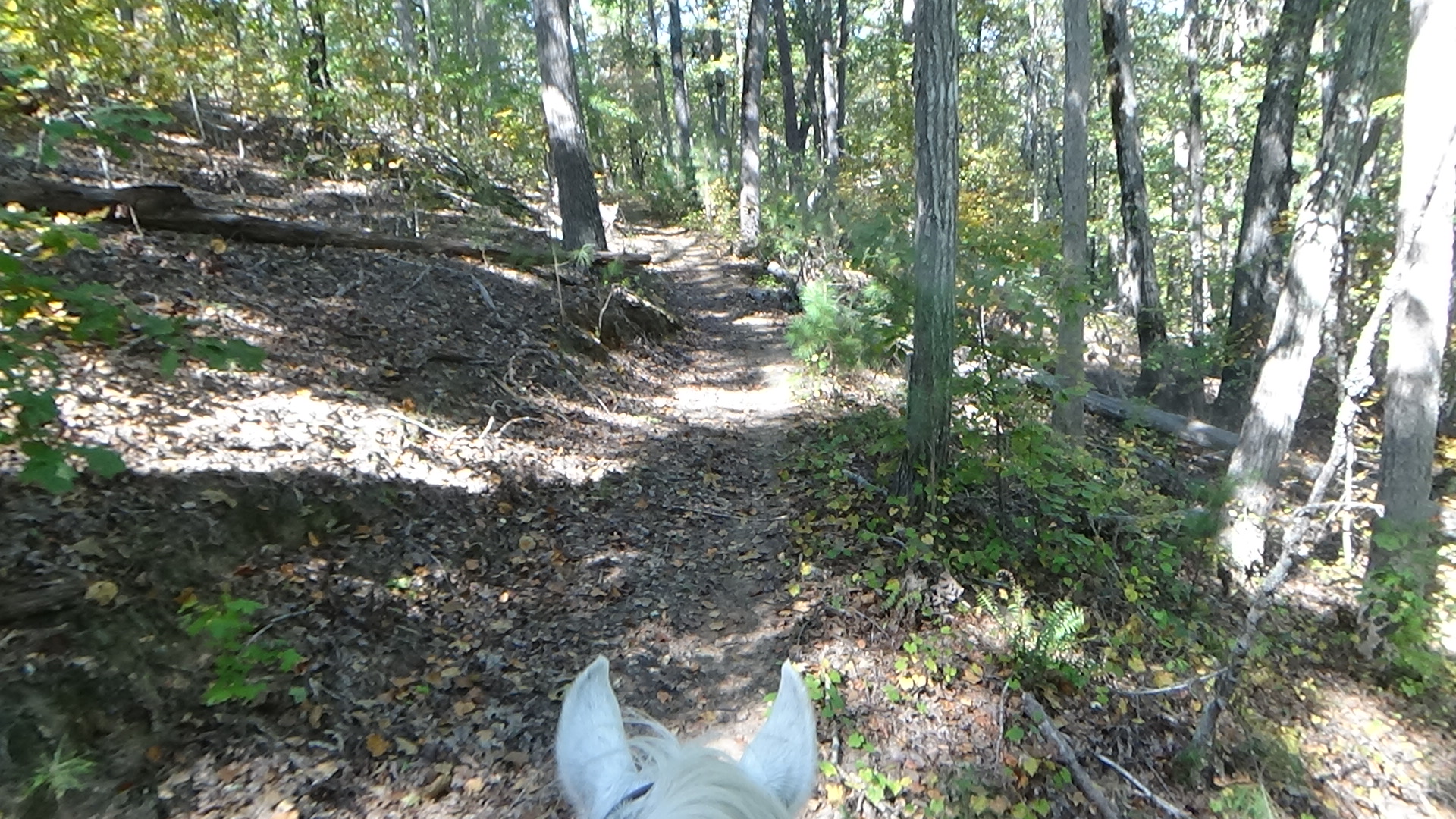 Well, my new horse neighbors are running their generator 24/7, so I had to put my earplugs in around midnight last night. They also have a pack of dogs, and one of them never stops barking, so whatever peace I've been enjoying here has taken flight! Oh, well! Had a quiet morning, waiting for it to warm up (it was in the 40's last night, so I even put on Flash's blanket!), which it finally did around noon, so we saddled up and headed out for another fantastic ride. The trails here are truly wonderful, and even with a crowded campground, I never came across another rider. Today, we went up the yellow to the west fork, hitting blue, then turning east to pick up red, which is the second to last trail I haven't done yet this trip, taking that to orange and doing that back to camp, opposite what we did the other day. Of course, every trail looks completely different going in the opposite direction, doesn't it? It was a lovely nine+ miles, and while he was a bit more subdued in the beginning, not having another horse to compete with, he picked up his pace pretty well on the last few miles. Such a gorgeous day, not a cloud in the sky and in the los 70's, in the shade of the woods, it was just perfect! Exactly the kind of days I live for, and cherish! So grateful for this life! We got back around 3:00, put him away, then go on with my usual afternoon and evening routine, though I added a chore, swapping out my pretty worn out ivory sheepskin saddle cover with your barely used black one, making sure to secure the latest black cushion I bought for my Yellowstone ride, so now the saddle looks like new! Watched a few more episodes of MOTG, heading to shower and bed shortly. Good night, sweetheart! Love you!