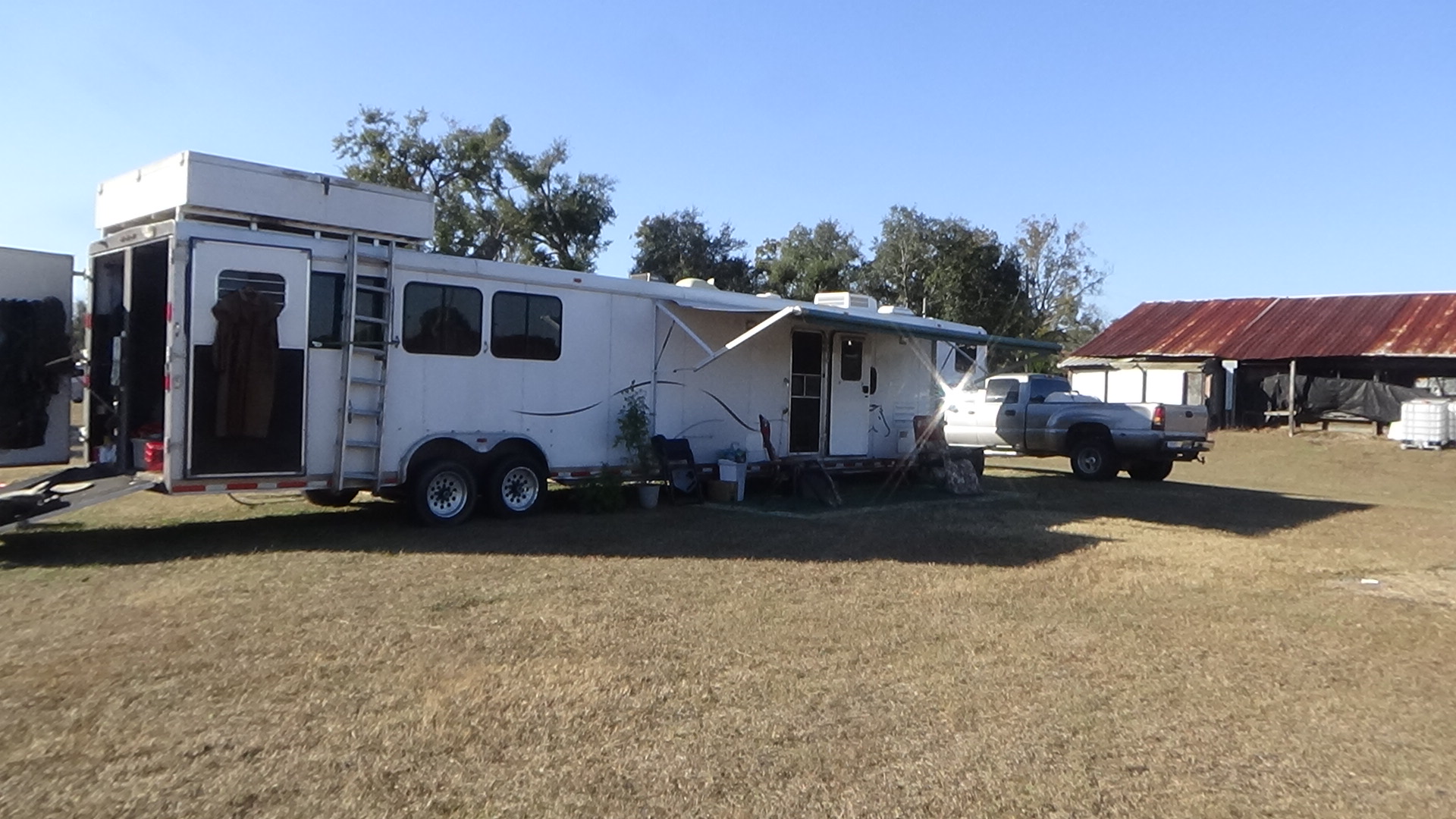 Had a good night sleep, woke up before the alarm again, finished packing up and was leaving Broxton by 8:30. A little chilly, but not a cloud in the sky, so a great day for driving. Had an uneventful drive to McCulley, though I realized I had forgotten to get a Health Certificate, so I had to come in the back way to avoid the Ag stations for the moment. One stop for fuel in Georgia, paid $3.37/gal, about thirty cents less than the first station I saw in Florida, so I'm glad I filled up. Picked site 63 near the corrals, though I had to plug into 62 because the first one wouldn't keep my plug snug enough to stay in. Got the horses squared away, putting on their blankets at suppertime, settled down for a quiet evening, watched a movie, ready for shower and bed! Been running the fireplace all day, the forecast is calling for about 29 degrees overnight, so the plants are staying inside. I even covered the water hose with my canvas tarp, which I hope will prevent my water from freezing, fingers crossed! So far, it's staying about 70 degrees in the camper, very comfortable, but it's still in the 40's outside. I expect it will drop a bit overnight, but we'll see! Good night, sweetheart! Love you!