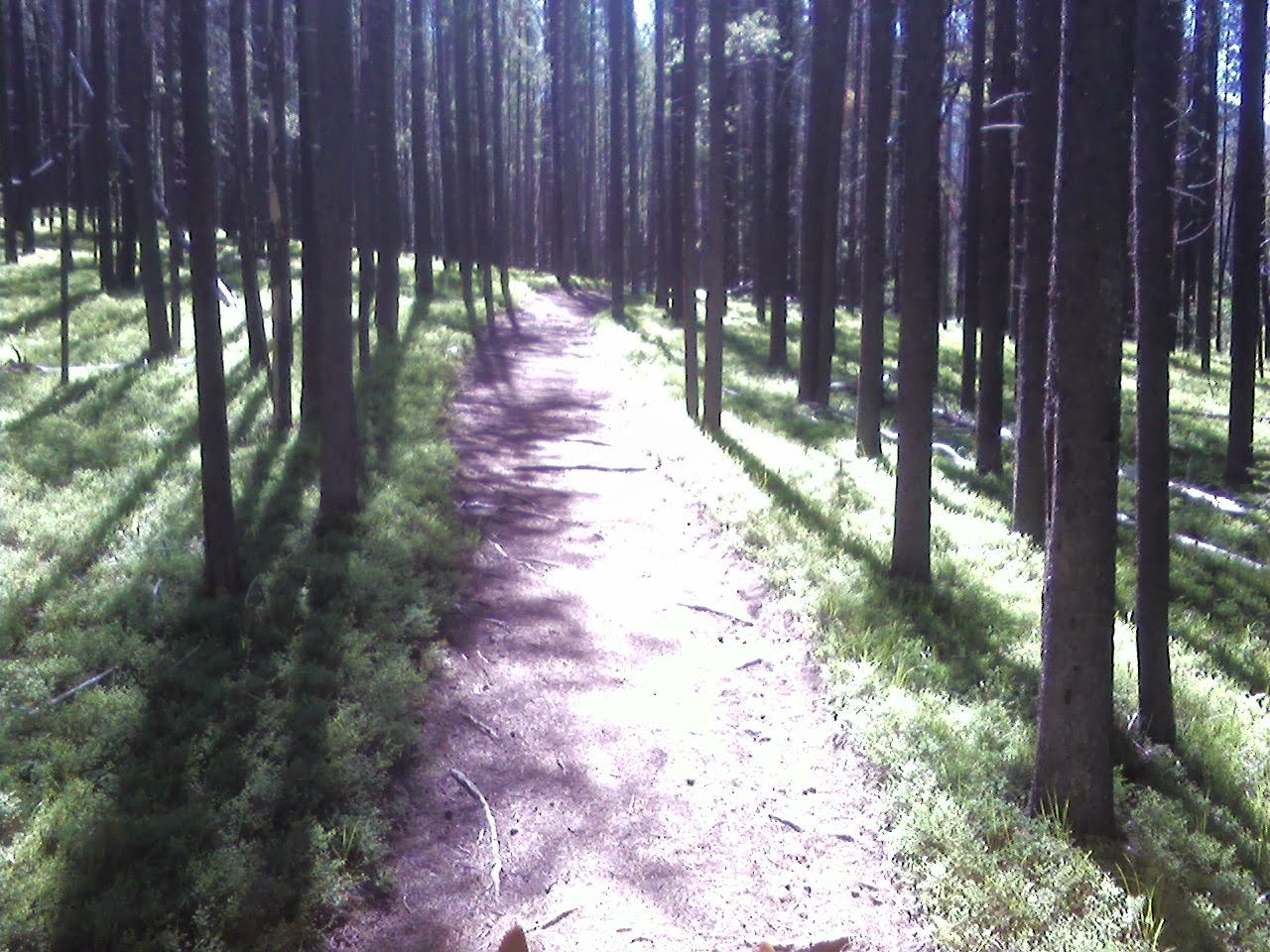 Saddled up and out by 10:15, following a pretty wide dirt road with some gravel. The first half mile was a mix of stone and dirt, so eventually we decided to put their boots on to be safe. Once we made the first river crossing, the trail got a bit narrower and less rocky, and really felt like a walk in the park. We decided to take the Blackfoot Meadows Trail, as the other Kading trail looked more rocky and seemed to climb a lot, and frankly, we’ve had enough rocky climbs for a while. This is an incredible forest, with only one kind of tree, lodgepole pine, all 3 or 4 stories high and straight as an arrow upward. They have obviously had some infestation, as quite a few trees were dead, particularly on the east side of the river, and the campground was the worst, where practically everything is dead. There’s no work being done in the campground, however, so my only supposition as to why it was closed is because of fear of liability, not any actual trees being down yet. Seems like they could just put up a “Camp at your own risk” sign and leave it at that. Anyway, the trail was fantastic, only a few ups and downs, mostly to cross the river a few times, which were shallow, easy fords. There were a few places where the trail was narrow and hanging on the edge of the mountains, but nothing too dangerous for a seasoned horse. We passed one couple of runners and two fishermen, then the trail opened up to Blackfoot Meadows, a large gorgeous clearing with the creek running through it. It was so easy to imagine the meadow full of teepees and Indian families, as surely was the case a century and a half ago. We found a lovely campsite and stopped for lunch, with plenty of grass for the horses and a log for us to sit on. We spent more time at the stop than usual, simply because it was such a beautiful scene. Eventually, we set back on the same trail (we had no trail map, the first National Forest we’ve been to that didn’t have any free trail maps anywhere, even at the ranger station), as we didn’t know if there were any loops or other connecting trails. Passed a couple of other riders, fortunately at the creek where it was wide enough, and had a lovely ride the rest of the way home, arriving about 3:30. A perfect day, exactly the kind of day we are always striving to have!