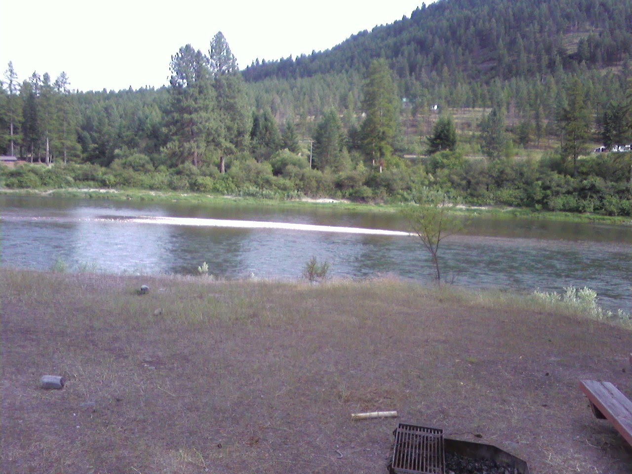 Managed to get out without any problems despite our earlier concerns, got out by 10:00. Stopped in Missoula for a new electrical outlet and propane (at $.99/gallon!) for the RV and gas, then traveled to our overnight stop, arriving about 4:00. We had decided the drive to Spokane was too long to go in one day, so we decided to stop at a campground in the Lolo National Forest, at a campground that is, quite literally, under I-90. Convenience was great, there was a corral (actually a round pen), and it was right next to a river (Clark Fork, I believe) but of course, it was quite noisy, with a train track on the other side of the river, and the freeway above. An earplug night, for sure! At least it’s convenient!