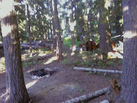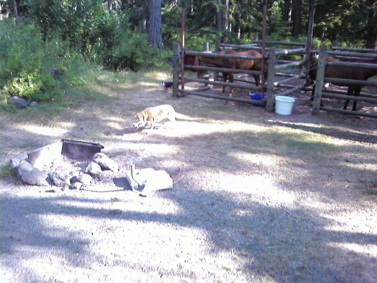 Had arranged to meet an old friend for breakfast at the Perkins at about 10:00, enjoyed catching up with him for the next 3 hours, a bit longer than intended, but then again, that always happens when we get together :-). The headed out towards Yakima, stopped there for gas, groceries, water and Home Depot before heading up to White Pass Campground, which has a loop for horses, conveniently located right off state highway 12. Stopped at the Ranger Station looking for maps (which they were quite happy to sell me, but didn’t have any freebies, so I declined.) We arrived later than we had hoped, but in plenty of time to get everyone settled quickly enough. Had to take a run down to the lake for water for the horses (none on site), then we crashed quickly, still feeling exhausted from our busy week.