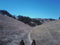 Since we still had a few more trails we wanted to ride before we left here on Monday, we made the rare decision to ride two days in a row, heading out on Spikes Peak trail back to the South Boundary Loop. While the maps the park provides at the kiosk are very good, there are a few signposts that need repair (though for the most part, it was very well-marked throughout, with posts at every intersection), and there was on post on the ground we almost missed because of the high grass and hard to see trail, but being that it mostly ran along the perimeter fence, it was easy to get back on track. As Ranger Lee had mentioned our first day, if we get lost, just head north and eventually we’ll bet back to the camp. Mostly the same kind of terrain we’ve had all along, but in one spot, the trees suddenly disappeared and the area was full of low bushes and brush, giving it a completely different look for about a half mile. This is definitely one of our favorite stops! While several other horse trailers came in for the day today, there were no other overnight campers the entire week we’ve been here, which really surprises us considering the close proximity it has to so many major roads and cities. They certainly could stand to do more publicity, but I guess that’s not in their budget. Meanwhile, this is one of the best kept secrets of Central California!