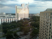 Due to the duration of this trip, we decided is would be more cost effective to take a cab to the airport, and he arrived right on schedule, getting us to the airport in plenty of time. Unfortunately, the flight was posted as being delayed for half an hour, but then somewhere along the line it got back on schedule, so we arrived just about on time. Picked up a little stripped down Chevy Aveo (such a downturn from my Mustang!), but since we don’t have all that much actual driving to do, it will be good enough. For $11 bucks a day, who can complain? Arrived at the Rosen Plaza Hotel just up from the Orange County Convention Center where the bulk of the activities were to be held. Checked into a nice room on the 16th floor, so it was nice and quiet except for the A/C which was a window unit, though it was ten times better than the hotel in Chicago where we stayed earlier this month. Ordered Chinese as has become our habit on the first day of our arrival, and went to bed early.