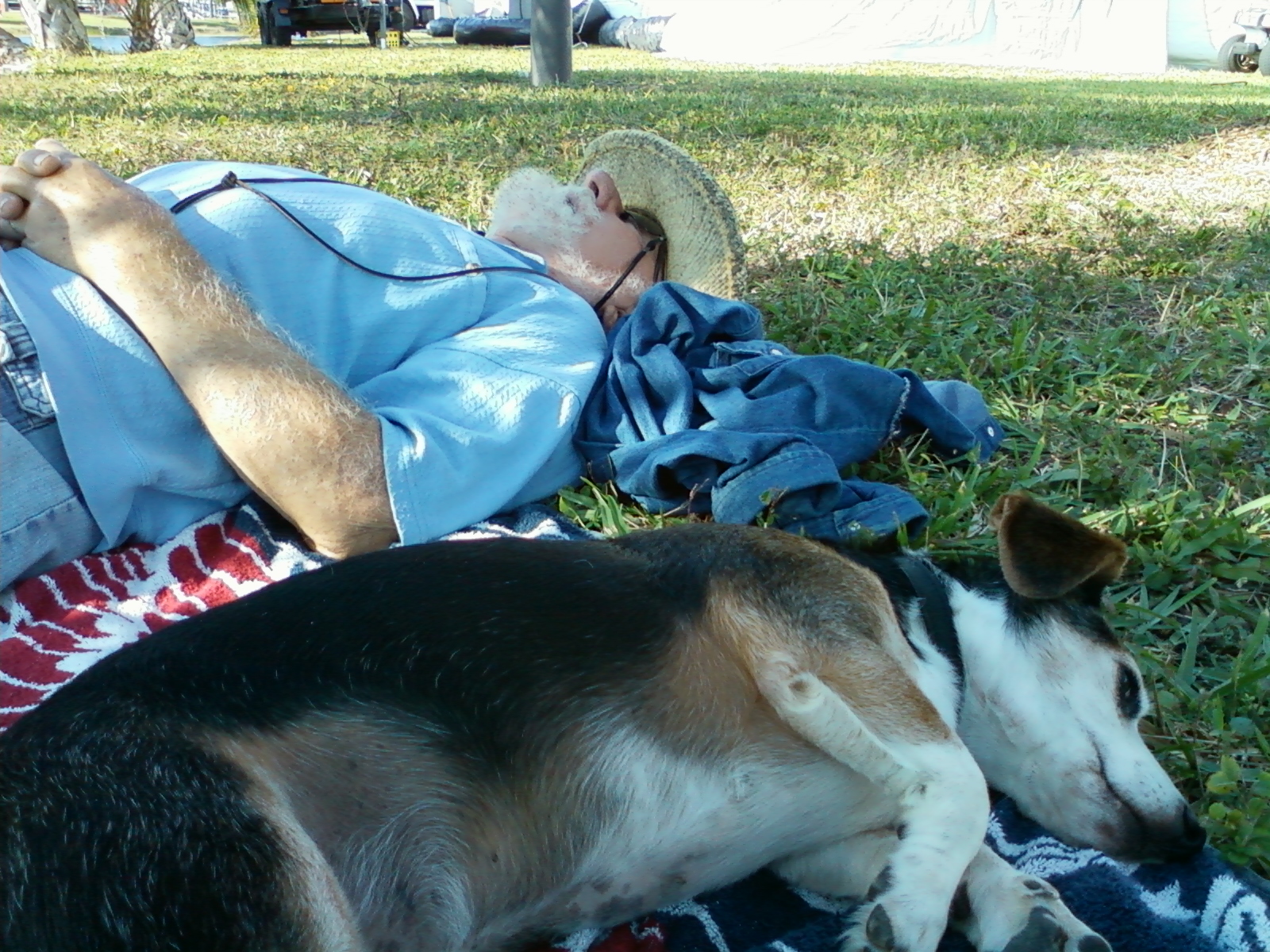 I promised to take my brother riding today, and we also discovered there was a local horse show at Jupiter Park, so we dropped off Hubby there so he had something to do, and brother and I went out to Riverbend Park to ride. Both are just a few miles from where we’re staying, so it was very convenient. We parked at the equestrian trailhead and headed out about 2:30 or so, once again accompanied by a saddlebag of beer (prohibited by the park, but how am I supposed to stop my big brother?). Since my brother got a little frustrated by not being able to get Hubby’s horse to canter last time, I decided to ride Hubby’s horse and let brother ride mine, since I’d been working on getting him to do some really nice loping lately. I also wanted to see if I could get Hubby’s mare to canter, since he hadn’t had much luck with that lately, and I wanted to see if I could solve whatever problem she was having. The trails here are much nicer than at JW Corbett, as they are actually meant for horses, traveling along canals and rivers and around marshes, albeit pretty dry marshes, what with the lack of rain here. After about 45 minutes, brother wanted to take a break (woosie butt, not used to being on a horse yet), though partly because he was out till dawn this morning, after partying all night. I was a bit surprised he was even able to go riding today, he must have had a terrific hangover, but I guess the beer was the hair of the dog for him, and that’s pretty much how he lives his life anyway, day after day, so I guess he’s used to it. While we were stopped, a woman came by, (initially galloping until she saw our horses, who were jumping around when they saw her coming), and we ended up chatting for a time. Eventually she moved on and we continued around the west loop and the Hammock loop area. I didn’t want to go all the way around, because I didn’t think my brother could handle it, so we just did a bunch of short loops in the area, repeating ourselves and backtracking just to keep it interesting (I’m not sure he noticed how many times we were on the same trail, but we were RIDING, so what’s the difference?) At one point, I found a nice straightaway to canter, so I got Clio going, and managed to get her into a canter without very much problem, though she had to get herself all the way up to a very fast trot before finally switching over. It wasn’t a long straightaway, so it didn’t last long, but when I got to the end, I looked back and say brother cantering along a ways behind me. He was flustered though, and told me Apollo had tried to buck him off when he went into his canter (not the slow lope I’d hoped for), reminiscent of his old trick of kicking up a time or two during his transition, something he used to do with me until I realized it was because I was holding the reins too tight. At least he managed to stay on, which was the important thing, and now he had a little excitement to add to his day! Got back to the trailhead about 5:00, then headed back to the other park to pick up Hubby, except he wasn’t where we left him. In fact, there wasn’t anybody at all there anymore. We kept moving, looking for signs of Hubby, until we saw a couple of horse trailers at the second arena (there’s a grass arena and a sand arena), and found him reading his book on a bench there. We all headed back home, enjoyed the evening sitting around chatting for awhile in our “porch” (under the awning of the RV) before settling down to TV and bedtime. A pleasant day had by all!