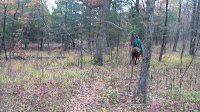 With a slight chance of rain forecast, we headed out for another ride in warm temps, our last for a while, as there’s a cold front coming in later today. Had to pull out our ponchos at one point, though it was only for a brief shower or two, better dry than wet! Today we headed out on Trail #4 again, and of course, Apollo was very unenthusiastic, as he hates taking the same trail twice. Once we got the intersection and headed up 4B, however, he woke back up again a little bit. We wanted a ride about the same 6-7 miles in length, so I worked out that if we took 4 to 4B, then looped back to the same #4 rather than continue toward Trail #2, it would be about 7 miles, and it worked out well. Passed a dead fox in the trail, and a dead cow in the bordering pasture, so I guess the carnivores in the forest are happy today. Wide trails intermingled with narrow woodsy trails made this another great ride. When we hit the big field on the home stretch, Apollo decided he wanted to gallop, so off he took, whipping around curves and off the trail across the open field. I was doing fine until he decided to slow down long enough to kick up his back heels, doing a little rodeo move on me. I managed to stay on okay, but it always make my heart pound a bit faster not knowing what he’s going to do at moments like that. Never a dull moment! We got back to camp safely, got everyone up away, blanketed up the horses even though it was still quite warm out, we knew the temps would be dropping fast once the storm came in. And come in it did! Thunder and lightning, temps dropping 20 degrees in less than an hour, and one strike of lightning so close we think it was right in the campground! Glad we’re on rubber wheels! We kept waiting to hear if a tree fell down as a result, but it never did. Wasn’t about to go out and look, it was cold, blustery and pretty ugly. There were several campers in tents here, and I felt sorry for them, it was a pretty miserable evening. We were tucked up nicely in our little bungalow, but we had to run the generator all evening just to keep the heat going, amazing what a difference a few hours make! The horses seemed fine, even with the close lightning strike, but I’m sure they were glad to have those warm blankets on now! Going to bed to cuddle with Hubby and Billy (the little dog, before you get any crazy ideas!), to ward off the nasty weather!