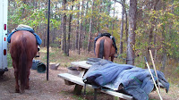 Another day like yesterday, working on the computer, reading, fending off the cold. The horses came out of the trailer for the day, back in for the night, another short walk, etc.