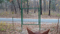 With the forecast indicating just a couple of nice days followed by some cold, rainy weather, we decided to ride every day, back to back, rather than skipping a day between rides, just so we can get the rides in before we have to hunker down against the weather. We saddled up after breakfast and headed out,this time to the east and northeast to Trail #4, then south to hook up with #2 and then the section of #3 we didn’t ride yester. What a great ride! #4 is a bit wider, almost like a carriage road, but still single track, and still shaded by trees. It runs along a perimeter fence with beautiful pastures on the other side, and a few cattle grazing, which startled the horses for a minute, but they moved on with little trouble. Had a few great places to trot and canter, and still perfect dirt/sand footing. Even though it was the second day in a row, the horses didn’t mind, as it was a whole new trail, and we only went 6 miles yesterday, so they were still pretty fresh. This place is really great, and the weather has been excellent, in the upper 50’s and 60’s, partly sunny. Enjoying it while it lasts! Love the gates here, they’re specifically designed to be able to open and close on horseback, easy chains, just the right height and balance for opening and closing, perfect! Came across some very interesting mushrooms, shaped like stars, don’t know what they are, or whether they’re edible, but they certainly are fascinating to look at! Got back by 3:00 or so, and since this was the warmest day so far, gave the horses a much needed bath at the convenient wash rack they have here. Gave the dogs a bath while we were at it, too, just to get everyone on the same page. The breeze started getting a bit chillier, though, so we put the winter blankets back on the horses before bedtime, settling down for another restful evening.