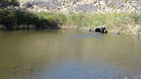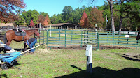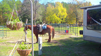 The strong south wind brought in some rain overnight, and the rest of the day it stayed pretty wet, with some torrential rains at times. We had put the rain sheets on the horses last night to help keep them dry, but it was warm enough to not need their winter blankets. We spent the day working on several projects and resting from yesterday, though Hubby took a ride to town to send out some of my mail and pick up some things at the hardware store. He stopped by the main office to ask about manure disposal, as we had seen signs that said we needed to bag the manure and leave it by the road, (an in fact, there were dozens of such full black bags around, providing more wonderful obstacles for trying to back up in a site with limited room), and was told the bags were somewhere in the campground. When he came back, he looked all around and couldn’t find any, and then was told by other campers that they weren’t provided, you were supposed to use your own! Would’ve been nice if the girls in the office knew that, Hubby could have picked up some black bags in town! As it was, we didn’t have any, except for 55-gallon drum liners, but one of the maintenance guys gave us a couple. Meanwhile, other campers seem to mostly just cart it off and spread it around in the woods, an option I think we’ll be utilizing as well. Not sure why they don’t just have a few manure bunkers or something, but, hey, it wouldn’t be the first time we’ve seen a poorly designed horse camp. In fact, this one can join a LONG list of others!!