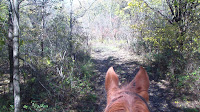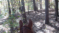 Woke up to bright sunny skies this morning, though a few clouds came in briefly during breakfast. Gained 0.2 pounds, but I suspect that has more to do with the change of weather than anything else. We’ll know more tomorrow… Got a late start, but Hubby was feeling up for a short ride, so we saddled up and headed out around 1:30, after spending some time getting all the mud off the horses. Even though they had rain sheets on, and last night their winter blankets, they still managed to get their faces, bellies, and of course, legs caked in mud. I had originally planned on an 8-mile trip, but it soon became obvious that the trails were still too slippery, and rather than risk it, we shortened it to a loop that took us just under 5 miles. Fortunately, the trails were very well marked and only got turned around once briefly. A lot of wide open spaces that would normally be great for trotting and cantering, but were just too slippery today, plus a few areas of woods and several creek crossings. Hopefully with the sunshine and cool breeze, the trails will be drier tomorrow, as we’d like to take a longer ride then. The horses were brilliant today, just a few extra kicks when Apollo changed up from a trot to a canter on one section of drier field, then kicked up to a gallop just for the fun of it (his idea : -). Had a relaxing evening, though a very brief spot of rain and blustery wind came it, though it didn’t last long, thankfully. Hopefully it didn’t re-saturate the trails too much, and tomorrow we’ll find them in better shape.