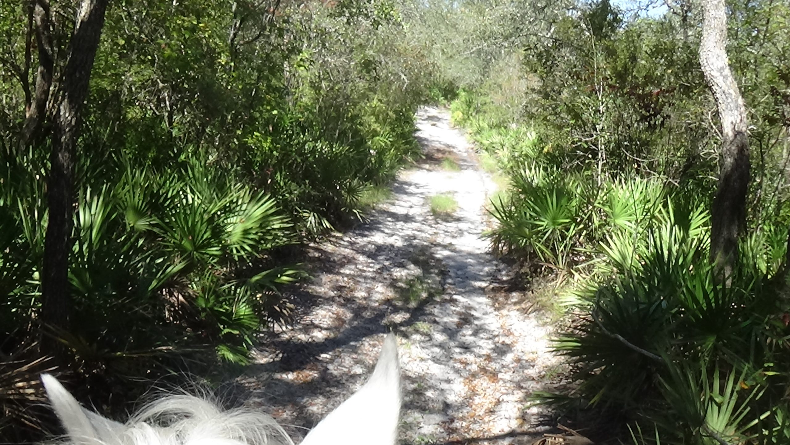 Can't believe how much sleep I'm getting. I must have read later than I thought last night before falling asleep because it was nearly 9:00 when I woke up this morning. Crazy! Well, I did do a lot of physical work yesterday, and I do feel fully recovered, so I guess that's a good thing. When I went to feed the horses, I found the top wire in Apollo's fence was hanging down. I had noticed yesterday he was leaning up against the fence, rubbing on the wire, now I know he was testing it. He pulled all the caps which held the hotwire off the tops of the fenceposts, just like he used to pull the portable fence posts right out of the ground. So I had to put the hotwire on, glad that I got it fixed last week. Spent the morning working of the planning for the McCulley Farms endurance ride in a couple of weeks. There's a large section of forest that is still closed after the hurricane, so we're trying to come up with some interesting alternative routes. Meeting with the organizer tomorrow to get trail markers and discuss options. Finally got far enough along to stop and take Flash for a ride. After yesterday's exhibition of running around the pen like a mad horse, I figured he needed the exercise, and so did Lola, so by 1:00 we were saddled up. I headed over to the river trail, thinking it had been mostly cleared by the Spirit of Suwannee folks, but I was certainly wrong about that! I was barely a mile out when I came across a couple of big trees blocking the trail. I had my mini-chainsaw with me, so I cut enough limbs to clear the way to step over the biggest log, and a few other small ones further down, but it soon became clear that no clearing had, in fact, been done on that section of trail. Since the point of the day was to get Flash some exercise and not do trail clearing, I managed to bypass a couple of bad spots and finally get to the old bridge stanchions, and the trail was completely blocked right there. I turned back to the wide trail and we ended up going on the hard-packed sand road all the way down to the Allard tract, about two miles down and two miles back. Then we cut back toward the river for a ways before heading home. A rather boring ride, but the point was exercise, and it's clear that I won't be able to reach any of the eastern trails any time soon. We gaited most of the way, so it was a pretty good workout, we did about nine miles. When it came time to feed them dinner, it was obvious Apollo had tested the fence and learned his lesson, because I couldn't even get him to the gate to put his feed bag on! I had to go in the paddock to do it. Surprised it took him three weeks to push his luck, he's always been a pretty good Houdini. Anyway, had a pleasant evening, ready for a quick shower and bed. Good night, my darlin'! Love you!
