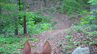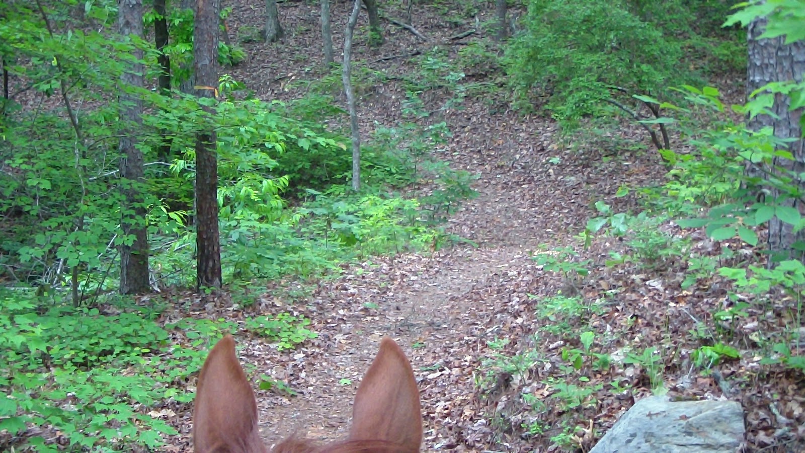 Once again set the alarm early and got out early, because the trail today is the Blue Trail, the longest this National Forest has to offer. We hoped because it took us to the far northern regions of the park that it would be more pristine and less clear-cut. Unfortunately, that turned out to be a very wrong assumption. Now, let me clarify something here. We have personal preferences as to what kind of trails we ride, as I’m sure all trail-riders develop after a while. We prefer trails over roads, we prefer dirt (or shallow sand) over gravel, we prefer old forest over highly-managed forest, we prefer back-country over populated areas (away from roads so we can at least IMAGINE what the early pioneers experienced), and we prefer public lands over private. In that context, the Blue Trail was a HUGE disappointment. The first half of the trail was on bull-dozed trails (I got the impression it had been a nice single-file trail once, but someone go the clever idea of widening it with a bulldozer, which utterly ruined it, in our opinion) and most of the trees had been clear-cut at some point. About the half-way point (going counter-clockwise, that is), the forest started getting nicer, more deciduous and older-growth, but then the trail went from bull-dozed dirt to an older gravel and dirt road logging road. Finally, the trail veered back into the woods again, but that was short-lived as well, and we were soon back on gravel and dirt roads. At about the 12-mile point, we finally reached a bridge over a creek large enough to water the horses, and stopped for lunch. Hubby was managing, but he was still in pain, and every time we trotted he had to post to keep from jarring his shoulder, so his legs were starting to burn. That meant we would have to either canter or walk for the rest of the six miles. After lunch we headed up the gravel road, but that quickly veered off into the woods on a real trail, thank goodness, and stayed in the woods for most of the return trip home, though it did continue to cross over the road back and forth. For the entire length of the 18.8 miles, we were never more than 100-200 feet from a road, and usually much closer, within view or earshot the entire way, so we never got even the slightest hint of the “back-country” feel we like to achieve. About the closest we got was a run in with a snake on the trail. It was stretched across the trail, about 3 feet long, and it looked dead, but I wasn’t about to take any chances, so I found a big stick and gave it a poke, and sure enough, it was just sleeping. It woke up and slowly started to get out of the way, first crossing uphill, then back across the trail downhill (see video). That was about the only excitement on the trail. We had estimated a 5:00 arrival, because all of the trail maps said the trail was 18 miles, but according to my GPS it was almost 19, so it was almost 5:20 when we got back. That extra time was critical, because Hubby’s painkiller started wearing off at about 4:30, and he didn’t want to stop to take more, he just wanted to get back, and he was in pain much longer than he should have been. Anyway, we finally made it, and after he took more painkillers, he managed to come out and help a bit putting the horses away for the night. It had sprinkled a bit during the last hour, and we knew there was rain in the forecast, so the help was appreciated. Got everyone settled in, then started the heat, cold regime on his shoulder again as we settled in for the evening, thoroughly exhausted, thankful for a day off tomorrow!