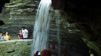 Started out the day with packing up as much as we could, moved the horses off the highline into the stalls so we could break that down, put pretty much everything we could away, left only the satellite dish to be broken down tomorrow morning. Drove down to Watkins Glen, made a few stops for essentials before heading out to the State Park here. Though I grew up 60 miles from here, for some reason I’ve never actually been through the park, so Hubby agreed to go with me. The website said they had a shuttle going between the top and the bottom, so I figured we could catch the shuttle to the top, then walk down, so it wouldn’t over-tax us. Unfortunately, the shuttle wasn’t running today, and in fact, they said it wouldn’t start until this weekend, when the summer season actually began. I keep forgetting that July 4th is the opening of summer here, not Memorial Day like most points south. So we decided to head up the Gorge Trail until we got tired and headed back. Turns out, we took it real slow, and the 800+ steps were spaced out enough where we made good progress without wearing ourselves out. The sights were quite beautiful, it’s easy to see why this became such a tourist attraction. The trail was over a mile long, with very impressive cascades along the way. Once we reached the top, we had a refreshment at the concession stand at the top, then returned to the bottom on the Indian Trail, which was a gentle along the ridge top, until it rejoined the Gorge Trail near the bottom again. We took a short diversion into a cemetary to pay our respects, the oldest born day we found was 1813. It was a lovely afternoon, though we were naturally tired by the time we got back. It was a lot of walking, and I was delighted a surprised that Hubby was up for the entire walk (he’s not much of a hiker). It must have been the frozen custard waffle cone we had before arriving here! Whatever it was, it held us over until we arrived back at the campground at just before 5:00. In our absence, someone new had arrived and set up, we spoke for a bit when I went over to feed the horses. Judy was a retired teacher, and she and her husband horse camp occasionally, but she had a group of women whom she also goes riding with, though they apparently stay in B&B rather than RVs. Then we settled down for the evening, planning on an early night, since we had to get moving early in the morning.