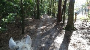 Got moving around 8:00, was leaving camp just before 10:00 (it's great when the horse containment is someone else's paddock so I had nothing to deconstruct!), and had an uneventful drive to River Rise. With a stop at O'Leno State Park to get my permit and gate code and a short drive to the Preserve, I was finished parking in my site by noon and fully set up within 90 minutes or less. Got involved with a conversation with a rider, which delayed me a bit, but I then took a quick drive down to Alachua to drop off the UPS package of my Amazon return (the circuit board I didn't need for my furnace) and was going to make a Walmart stop, only to discover there is no Walmart here, that the nearest one was another 15 minutes farther south in Gainesville. Since I didn't have much to get, I opted to go to the nearby Publix instead. Got back to camp around 3:00, put everything way, and was sitting down enjoying the afternoon when I got involved with another conversation with some guy who just stopped by my site and started talking (I guess I must just look like a good listener, though I wasn't trying :-)), and eventually settled down for the evening. Despite them having a barn here, I put my horses on their highline, which is more convenient for me, and because I'm worried that a stall would limit their movement, especially Apollo, and he'd get too stiff. At least on a highline, they have to move back and forth between the water in the middle and the hay bags on each end. I've half decided to just stay here two weeks, though I'll have to move sites, so that I minimize the amount of driving. I don't really have to go down to Green Swamp yet, since that's my destination in January anyway, so it doesn't make a lot of sense for me to get there any earlier. It keeps me going in the right direction, anyway, southward, until it's time to come back north! Besides, I rather like this "back yard," though I can't get very much sun here for my solar panel, but it's very woodsy and feels like old Florida, and I'm close enough to a water spigot (at least this week) for my hose to reach. It will be a different story next week, but if I fill up everything before I move, it should hold be for the week, and if I need more, I can always get some at the barn in my truck tank. Nothing I haven't done many times before! Headed for bed soon, my love! Good night!