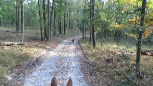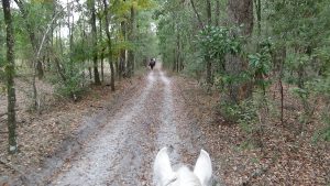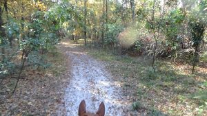What a great day! It started out with a much better night sleep, confirming my supposition that it was the overdose of aspertame that was preventing me from sleeping well. I had none of the previous afflictions after resuming a mostly water beverage diet today. After breakfast I had to fill up the water in my truck tank and refill the camper, then I finally saddled up Flash and headed out on the trail. We took the long perimeter trail, crossing 441 and riding all the way up to O'Leno State Park. I'd forgotten how beautiful it was on this side of the forest! Flash was brilliant once again, averaging nearly six mph for the day. We did over 14 miles in just under three hours, and got a tremendous amount of galloping, cantering and gaiting in. It was wonderful! About halfway around we went by a cattle or dairy farm, and we were sorry to see a dead cow in a copse of trees, and another cow, still alive, but laying down and not looking very well. So sad! Not far out from camp, there was a long rattlesnake crossing the trail in front of us, and when I stopped to take a picture, it started to rattle and curl up, so we moved along quickly to get past it. What a truly gorgeous ride! The weather is due to turn colder, so I wanted to get a good ride in before that happened, and I couldn't have asked for a better day, or a better horse. Flash truly is a wonder! Gave him a good rinse off with a brush before putting him away, and was happy that he didn't immediately roll in the dust, as he is wont to do. Settled down for the rest of the day to reading and bingeing on TV, and am looking forward to a quiet day for Thanksgiving tomorrow. Good night, my darlin'! Love you!
