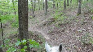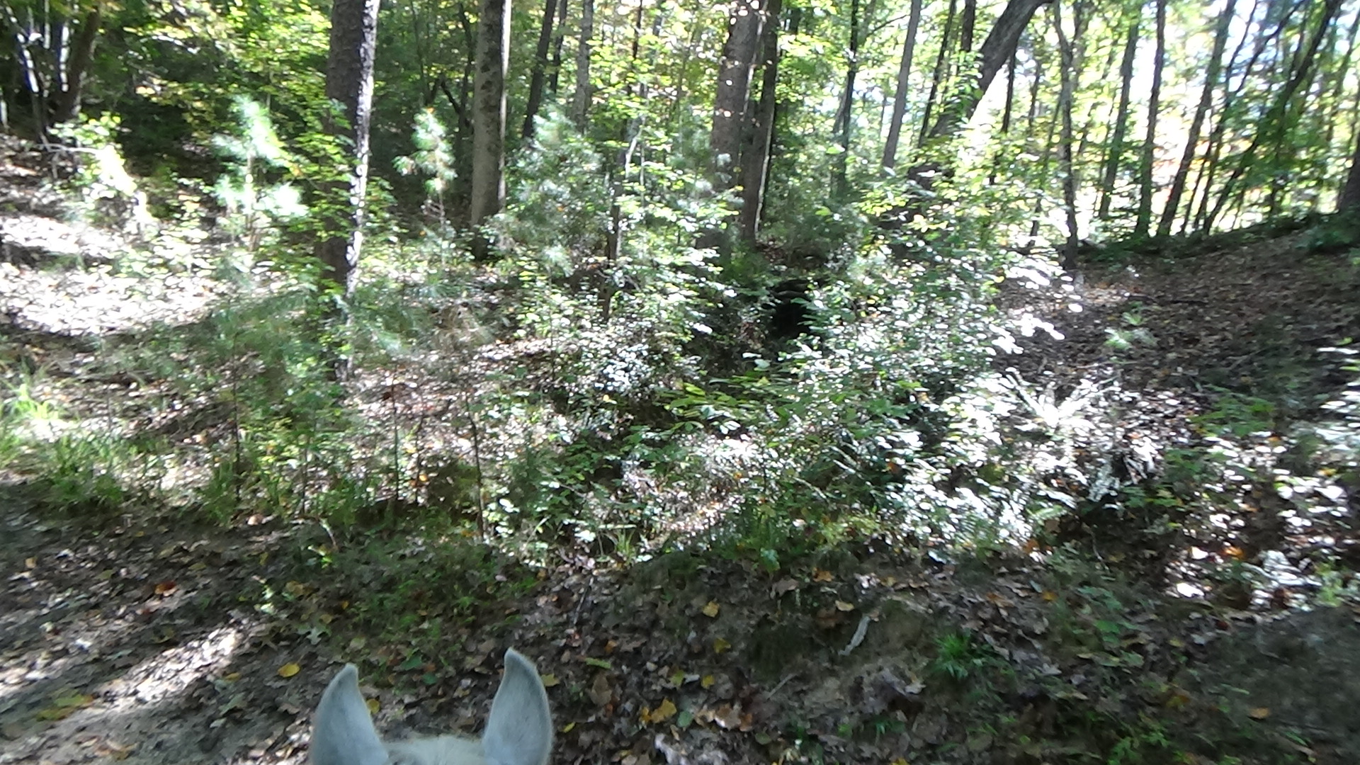 Had a great night sleep, a slow morning, and then a short, three mile ride on Flash, just to see how his leg did. What a ride! He was fine and normal for the first couple of miles as we started down by the river just to see how it looked after last year's flood (it was fine!), then headed up the yellow trail. I just wanted to do a short ride, so we did yellow, then purple. At the last mile, though, as we were heading back to camp, he suddenly became very excited and started wanting to canter, even though it was woodsy, twisty, windy and hilly! Don't know what got into him, except that he wanted to get back to camp as quick as possible! I had to stop and circle him a few times just to get him to settle down. Guess his leg wasn't bothering him, was it? We got back, I rinsed him off and put him away, keeping an eye on his right rear hind the whole time and didn't see any indication of anything being off. Yay! Next ride, we'll go a lot farther and see how it holds up. Very glad it doesn't seem to be anything too serious, though it's probably too early to tell. Spent the rest of the day in my usual routine, though I took Lola for a couple of walks around the camp loop just for exercise, to keep from doing nothing but sit all day, and to give her a little remedial training. She's hasn't been coming when I call very well, so we did a little work on that today. Settled down for my usual evening, heading to be soon! Good night, babe! Love you!