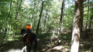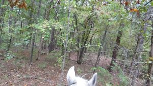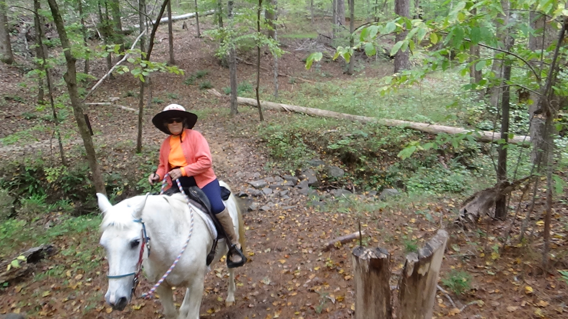 What a fantastic day! Managed to get to bed reasonably early last night, had an excellent night sleep, read for a short while in the morning, then saddled up Flash to take a longer, faster test ride today, to see how his leg really is. He was so full of energy, he was like a different horse! After the first couple of miles as he got warmed up, he suddenly decided he wanted to go, go, go! I don't know if it was the cooler weather, the long layoff, or just that he was feeling frisky, but he insisted on gaiting and cantering for nearly five miles! Considering the trails here are mostly single track, hilly, windy, curvy and right through the forest, it was all I could do to hang on! I can't remember the last time he wanted to move that fast, but it's definitely been awhile. I didn't want to discourage him, he seemed to be having so much fun, and so was I! To make it even better, when I got him back to camp, I kept a careful eye on his weight distribution, and not once did he favor any of his legs. So happy, and relieved! I've got my old horse back. Whoohoo! Rinsed him off, then left him at the trailer for a few minutes while I fixed the gate on his paddock. The top gate screw had come out this morning because the post is rotten in the center, plus it was too high for the bottom bracket to fit into the lower gate screw, so I drilled a new hole farther down so that it would set on the bottom gate screw properly. Once that was done, I put him away, still keeping an eye on him, but there seemed to be no side effects to all his speediness today, thank goodness. So enjoyed myself! After awhile, I got Apollo out and took him for a walk around the camp loop just for exercise, and did the same later with Lola, who didn't bother to come with us the first time. At least I'm getting some walking in these days! Finally settled down for the evening to a new BBC series, Monarch of the Glen, based in Scotland, which is a lot of fun. I had started another fantasy series, Wheel of Time, but it was so violent and gory, I decided to pass on it. Anyway, planning on another early evening, and hopefully another good night sleep, now that the cold front has come through. Back to the perfect weather I always seek, seventies during the day, fifties at night! Loving it! Good night, my darlin'! Love you!