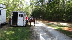Didn't bother to set my alarm since the trip today is so short. In fact, it turns out it's only about 35 miles, not 75, so we got there in less than an hour. Loading out was no problem, and we left about 10:30, the drive was straightforward, and having been here several times before, the load in was even easier. I learned last time that I needed to go clockwise, against the one way traffic on the camp loop in order to get situated correctly in site 5. The only problem with this site is that it's on a considerable grade, so I had to put every board I have under the front jacks just to keep the first step out of the trailer from being dangerously steep. Having two corrals made the horse containment easy, and being close enough to the spigot that my hoses easily reached both the trailer and the horse buckets. Wasn't too long before we were all settled in! We had a little rain in the afternoon, just a few sprinkles, so I didn't get much solar power stored, but I have plenty of propane, so it's all good! Fortunately, this site has a pretty good cell phone signal, so I was able to reorder all my stuff from Amazon and am having it sent to my friend Patsy, who I will see at the Sandhills ride, and perhaps sooner, as she mentioned she wants to come here to ride. So now we have another two weeks to enjoy here. I'm thinking about taking Flash for a short ride tomorrow, just to see if his leg has improved. Settled down to reading, watching TV, and my usual evening TV. Good night, my darlin'! Love you!