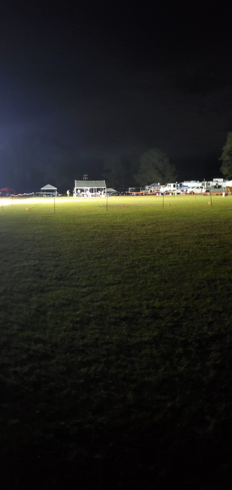 Not a great night sleep, woke up several times, finally got up with the alarm after getting up once to turn the fireplace on. It got chillier than I expected through the night, so I needed to warm it up a bit. Got all my chores done and was over at the snack shack just after 8:00 to help put batteries in the little lights they use for the night riding here. After that I mostly spent the day doing check-ins and registrations, first by me and another volunteer getting all the ride cards done ahead of time (a wonderful exercise that made life so much easier later in the day!), then doing the actual check-ins, which kept me busy right up through dinner. Finished off the day at the ride meeting, getting my assignments for tomorrow, then coming back to the camper, took Lola for a walk, cleaned up the corral a little bit (I had brought them hay earlier, but topped the buckets off again), finally settled down to a quick episode of Bones. I ate too much today, though I did try to keep it to low carb foods, but it's nearly impossible to not eat when there is so much good food around. I did manage to resist the banana pudding dessert and a bunch of other bad stuff. Back to my diet on Monday, for sure! Heading to be early, another early morning tomorrow! Good night, darlin'! Love you!