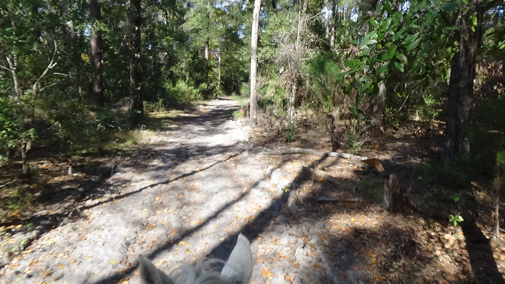 Got moving around 8:00, was leaving camp just before 10:00 (it's great when the horse containment is someone else's paddock so I had nothing to deconstruct!), and had an uneventful drive to River Rise. With a stop at O'Leno State Park to get my permit and gate code and a short drive to the Preserve, I was finished parking in my site by noon and fully set up within 90 minutes or less. Got involved with a conversation with a rider, which delayed me a bit, but I then took a quick drive down to Alachua to drop off the UPS package of my Amazon return (the circuit board I didn't need for my furnace) and was going to make a Walmart stop, only to discover there is no Walmart here, that the nearest one was another 15 minutes farther south in Gainesville. Since I didn't have much to get, I opted to go to the nearby Publix instead. Got back to camp around 3:00, put everything way, and was sitting down enjoying the afternoon when I got involved with another conversation with some guy who just stopped by my site and started talking (I guess I must just look like a good listener, though I wasn't trying :-)), and eventually settled down for the evening. Despite them having a barn here, I put my horses on their highline, which is more convenient for me, and because I'm worried that a stall would limit their movement, especially Apollo, and he'd get too stiff. At least on a highline, they have to move back and forth between the water in the middle and the hay bags on each end. I've half decided to just stay here two weeks, though I'll have to move sites, so that I minimize the amount of driving. I don't really have to go down to Green Swamp yet, since that's my destination in January anyway, so it doesn't make a lot of sense for me to get there any earlier. It keeps me going in the right direction, anyway, southward, until it's time to come back north! Besides, I rather like this "back yard," though I can't get very much sun here for my solar panel, but it's very woodsy and feels like old Florida, and I'm close enough to a water spigot (at least this week) for my hose to reach. It will be a different story next week, but if I fill up everything before I move, it should hold be for the week, and if I need more, I can always get some at the barn in my truck tank. Nothing I haven't done many times before! Headed for bed soon, my love! Good night!
