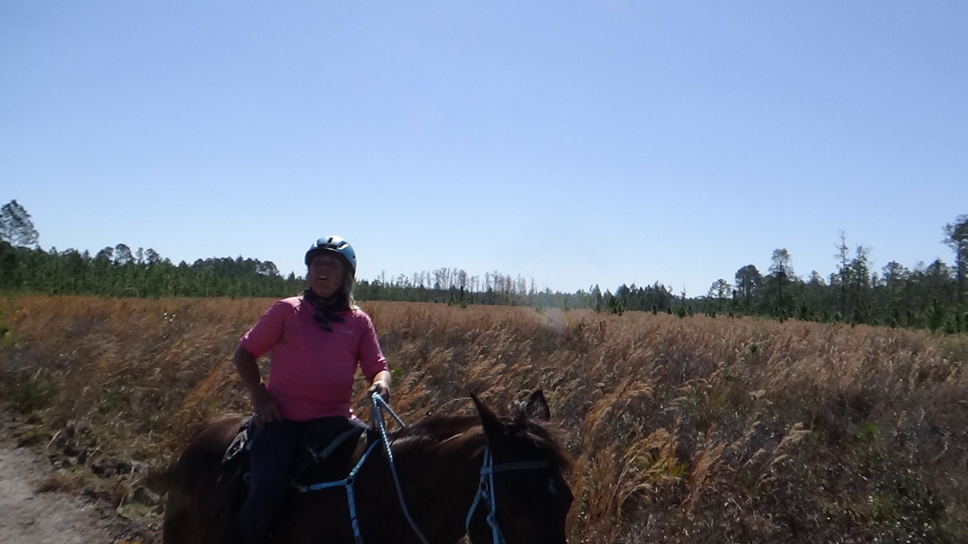Was woken up about 5:00 by Lola, pacing and panting, so I had to get up to let her out. Once she came back in, she was a bit quieter after awhile, but I still spent a couple of hours reading before I finally fell back to sleep. Once I got, did my chores, had breakfast, I set up my portable fence on the western part of the property, as the pasture they've been on is getting a bit overtaxed. The horses appreciated getting some fresh grass with their usual hay. Afterward, I took a walk with Lola, this time with Chelle and her two dogs. Her hound mix Fleury has been very aggressive toward Lola, biting her legs and going out of her way to be a bit mean, chasing her up the driveway and so on, but we figured maybe a few walks together might help, and fortunately, the walk was uneventful! Fingers crossed that a few more of those and they'll get along a bit better. Killed some time until I was to meet Jo at Apex, where we joined up and headed down to Tidewater to pick up the UTV the camphosts have down there, and headed out to clean up a few areas that are normally too wet to get into, but with the drought, are much more reachable. We cleaned up the swamp areas, and a few other places that are typically wet, and felt we got a lot accomplished. Got back home shortly after 6:00 and settled down for the evening, watching a few more Continuums, having dinner and a bourbon, taking a hot tub and shower, and soon to bed! Felt pretty productive today, even if I didn't get my taxes done! Still have a few weeks! Good night, sweetie! Love you!